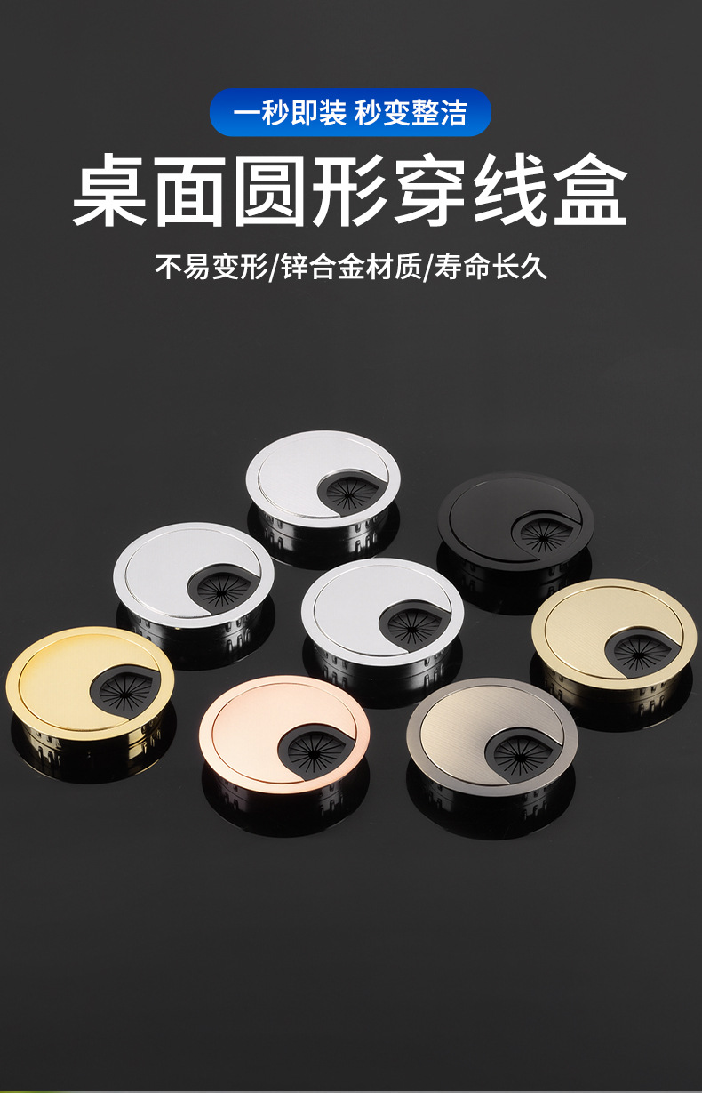 아연 합금 케이블 박스 데스크탑 케이블 구멍 컴퓨터 데스크탑 다기능 케이블 박스 원형 커버 구멍 케이블 구멍 도매