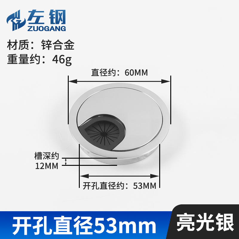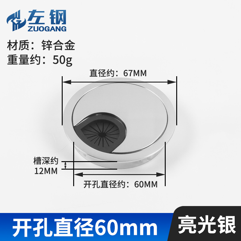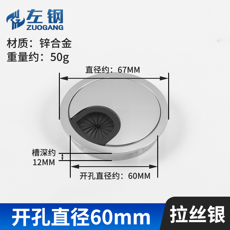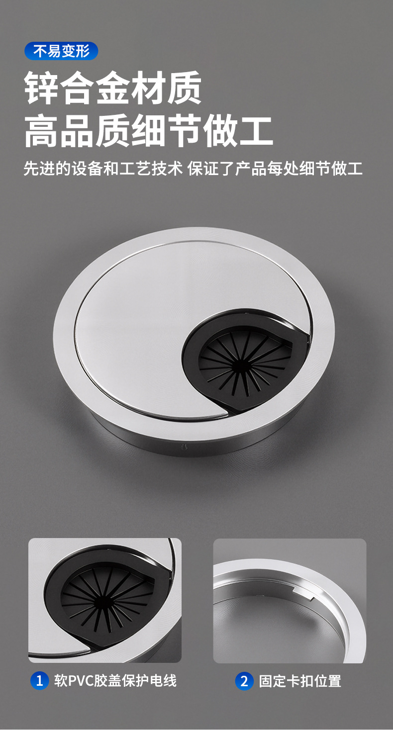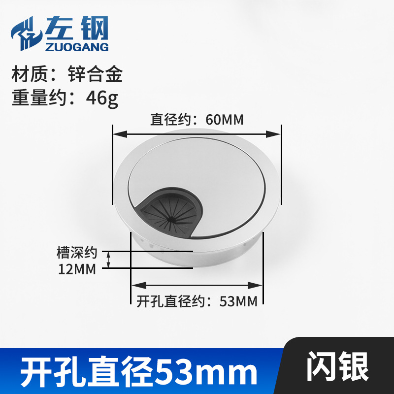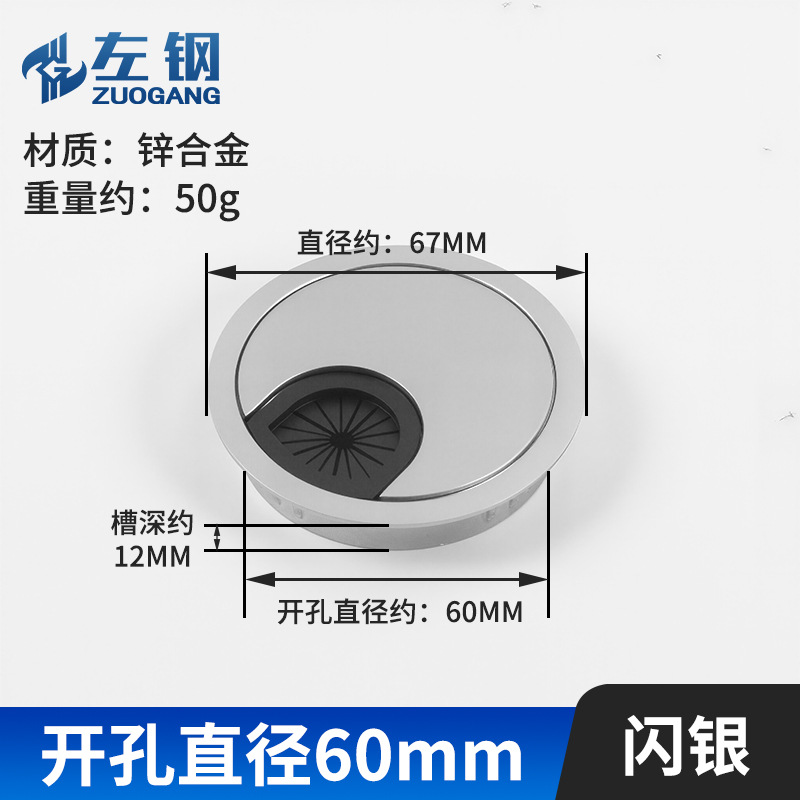 锌合金走线孔 桌面穿线盒 金属过线孔盖 圆形电脑盖板50 53 60 80
