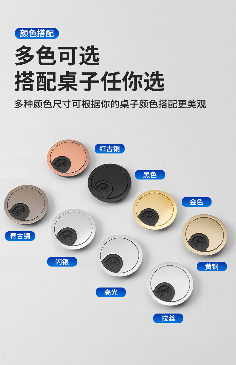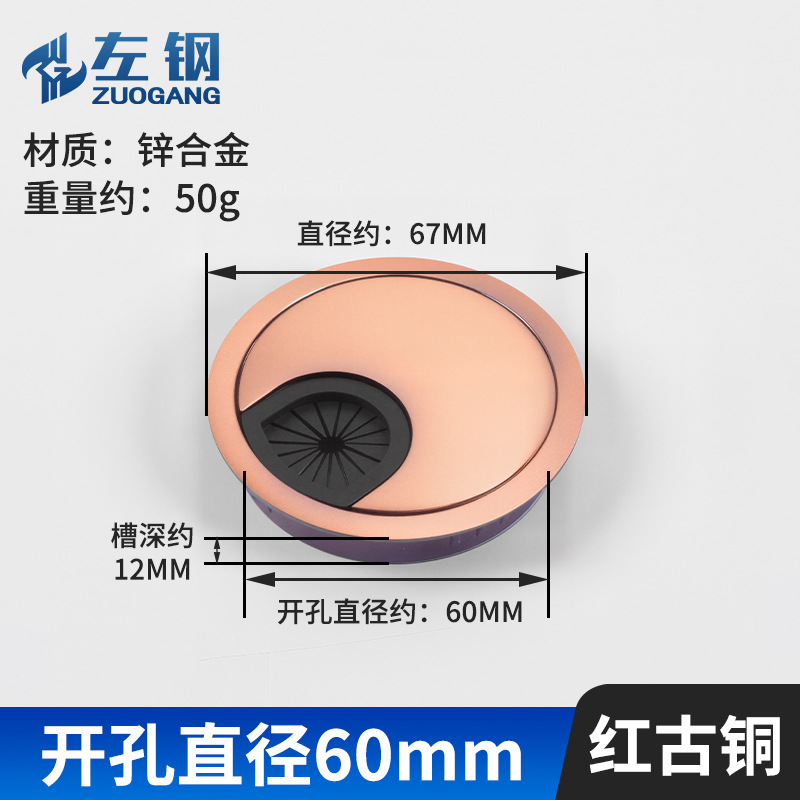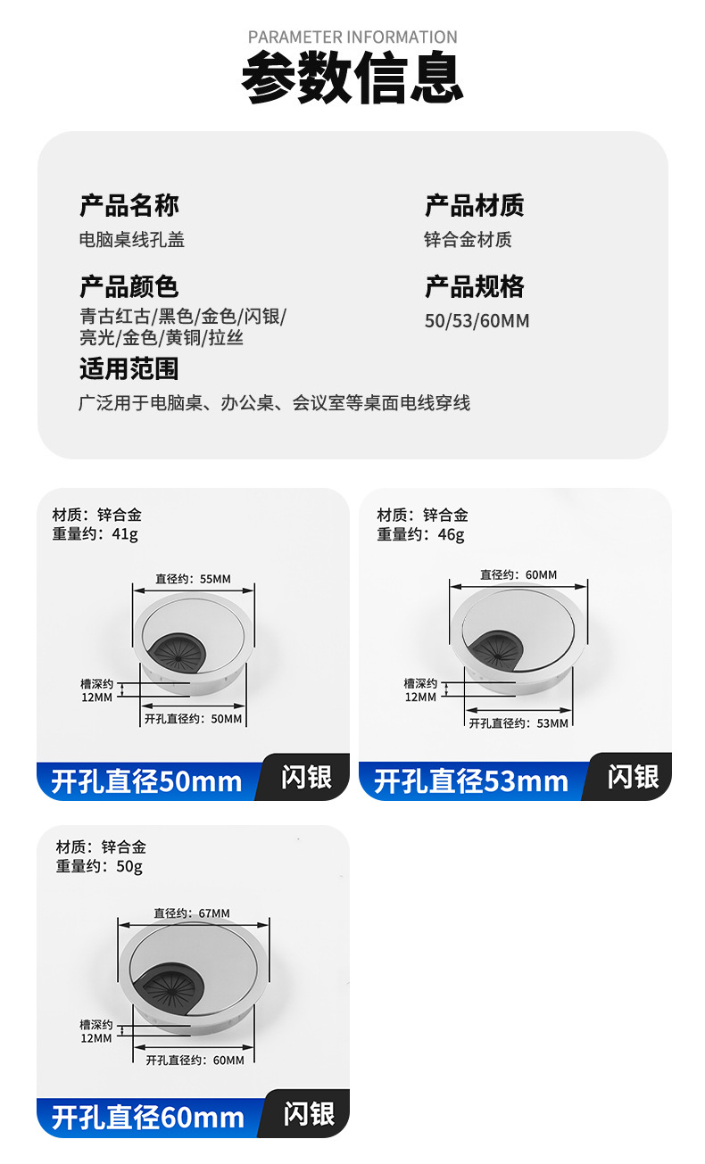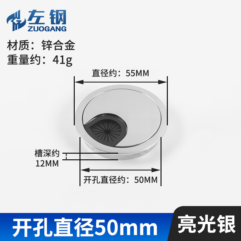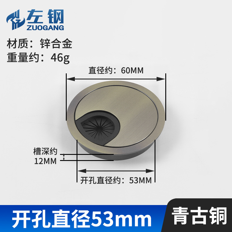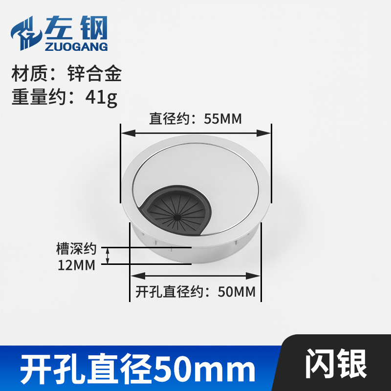 锌合金走线孔 桌面穿线盒 金属过线孔盖 圆形电脑盖板50 53 60 80