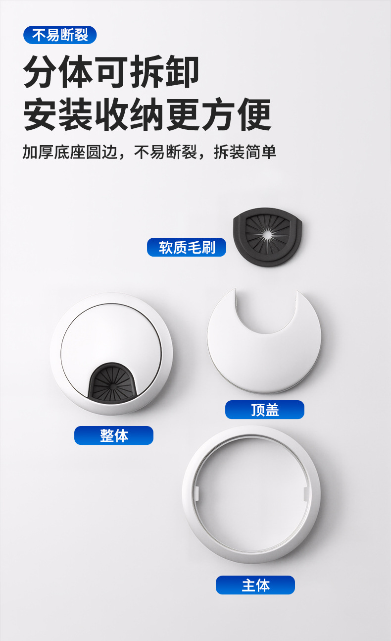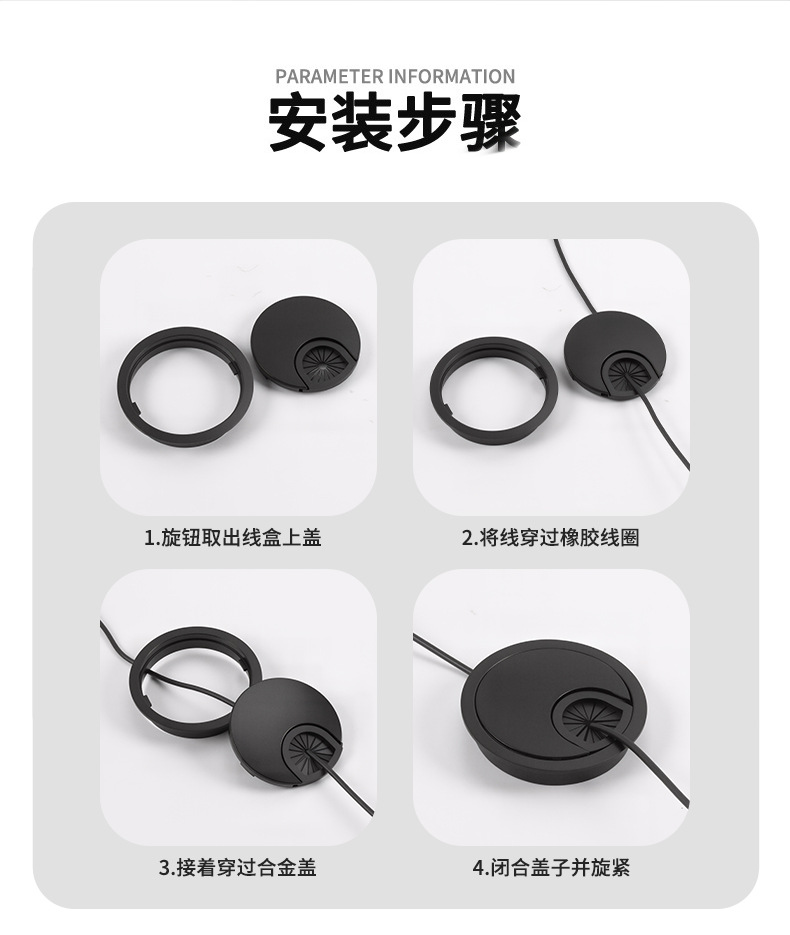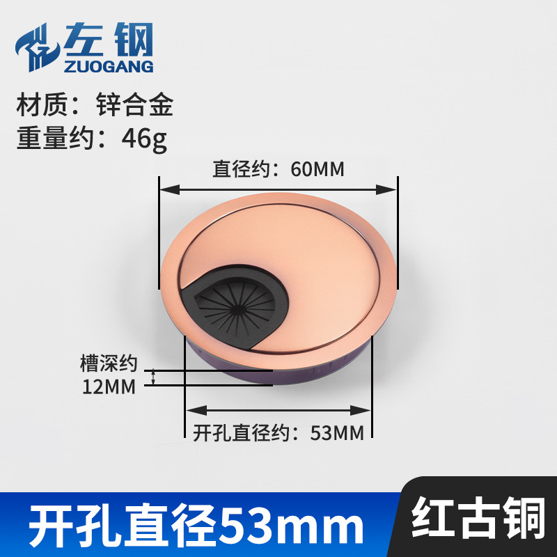 合金穿线盒电脑桌走线盒圆形办公桌面线孔盖穿线孔35/50/53/60/80