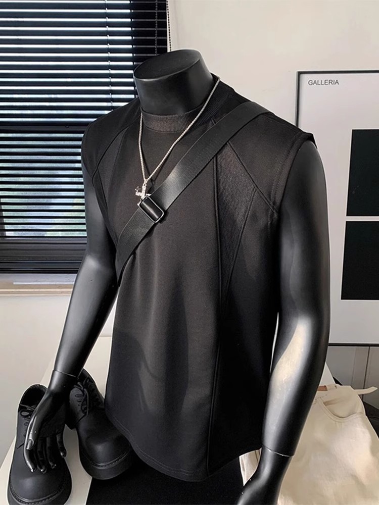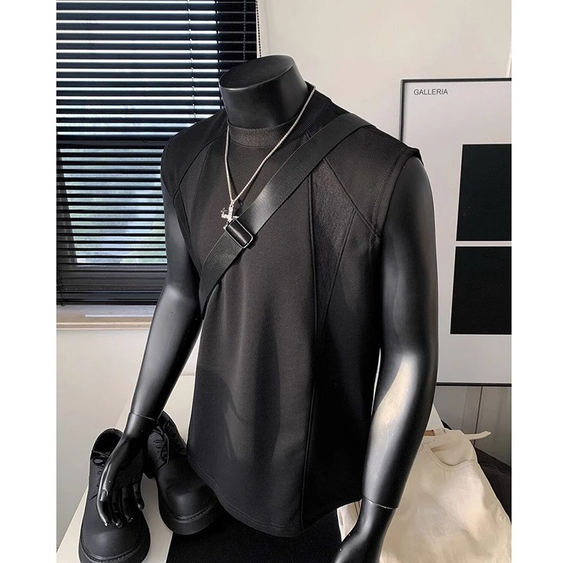 화이트 헤비 스레드 조끼 남성 여름 미국 조끼 티셔츠 피트니스 허들 스포츠 쿨 민소매 티셔츠