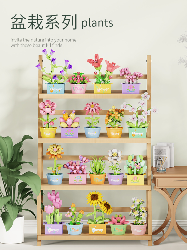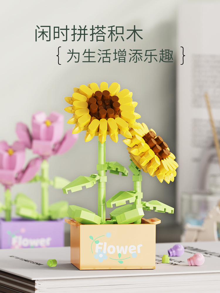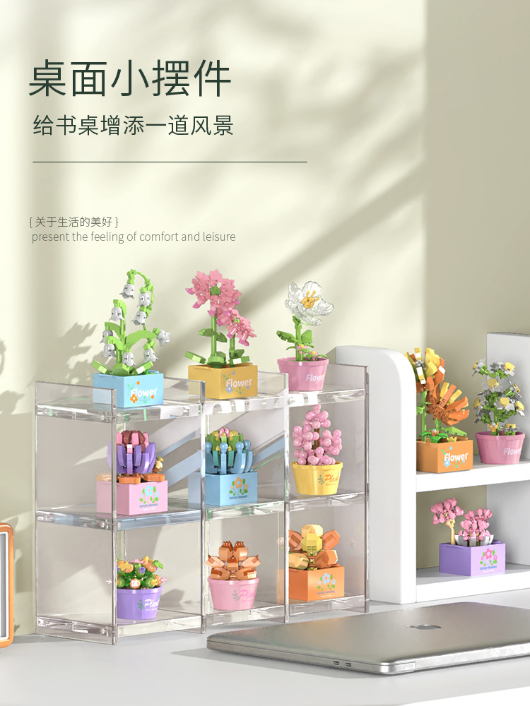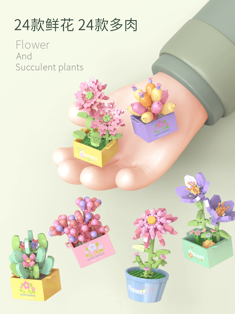 빌딩 블록 화분 마이크로 입자 실내 장식 데스크탑 작은 장식품 다육 화분 영원한 꽃 어린이 날 선물 상자스토어 가기