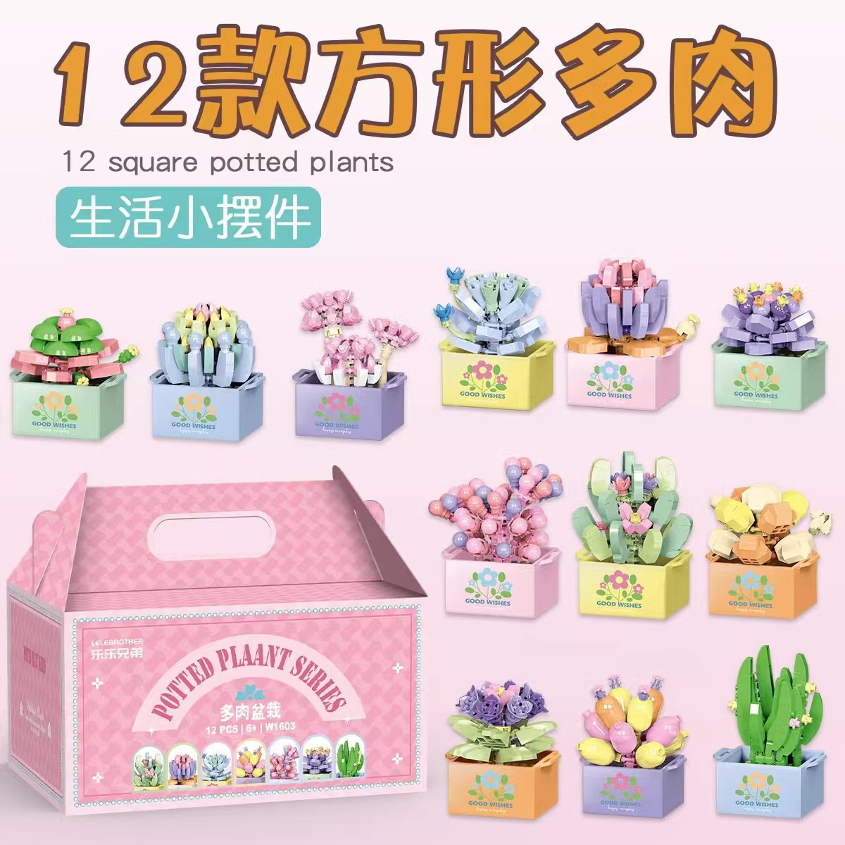 • W1603 다육식물 사각화분 12가지 스타일 + 휴대용 선물박스
