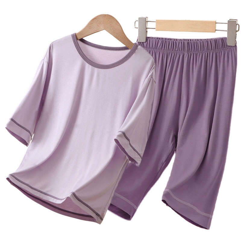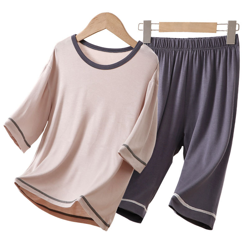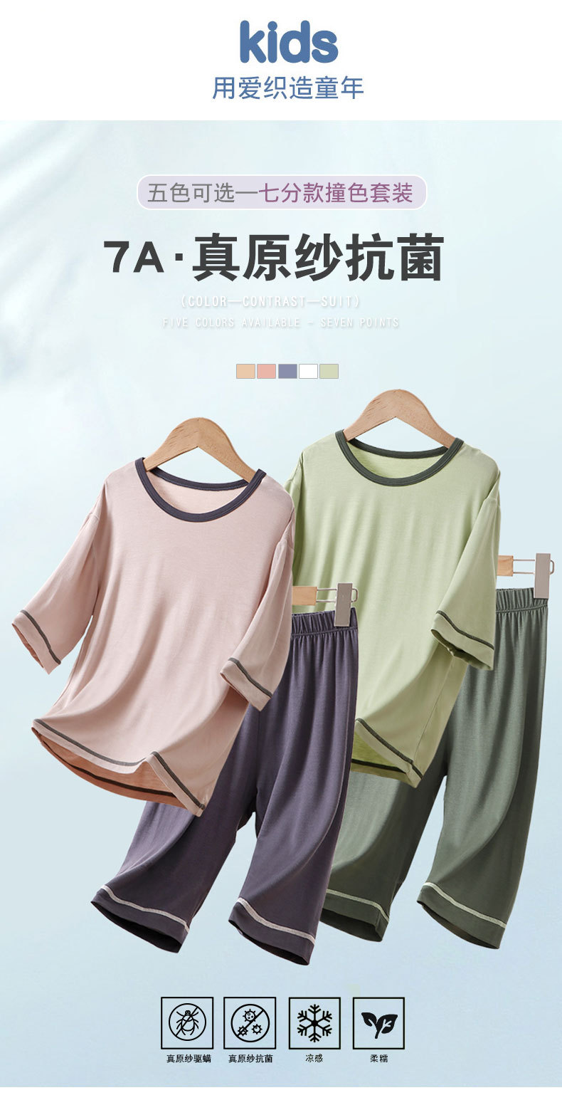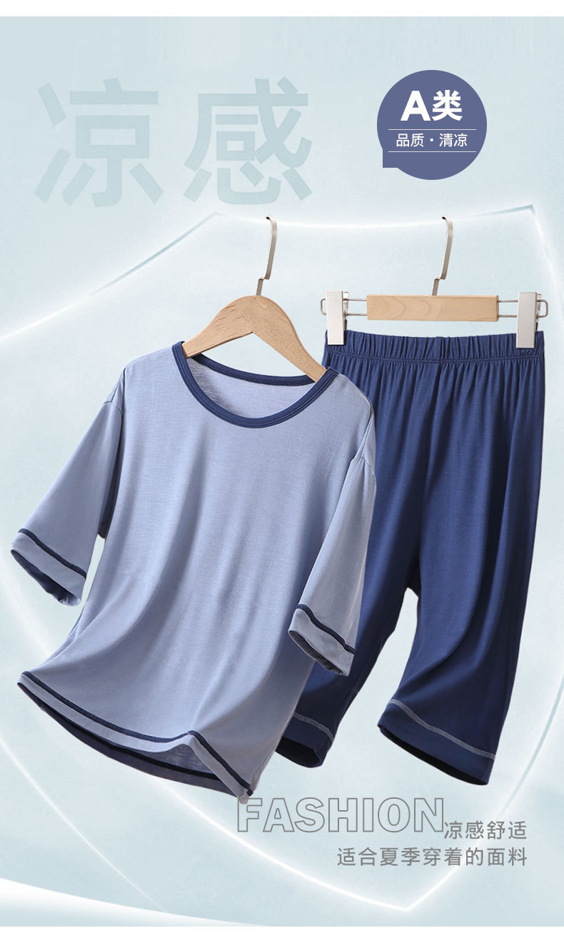 아동용 잠옷, 에어컨 의류, 여름용 얇은 남아 및 여아용 반팔 아이스 실크 모달 슈트, 대형 아동용 가정복스토어 가기