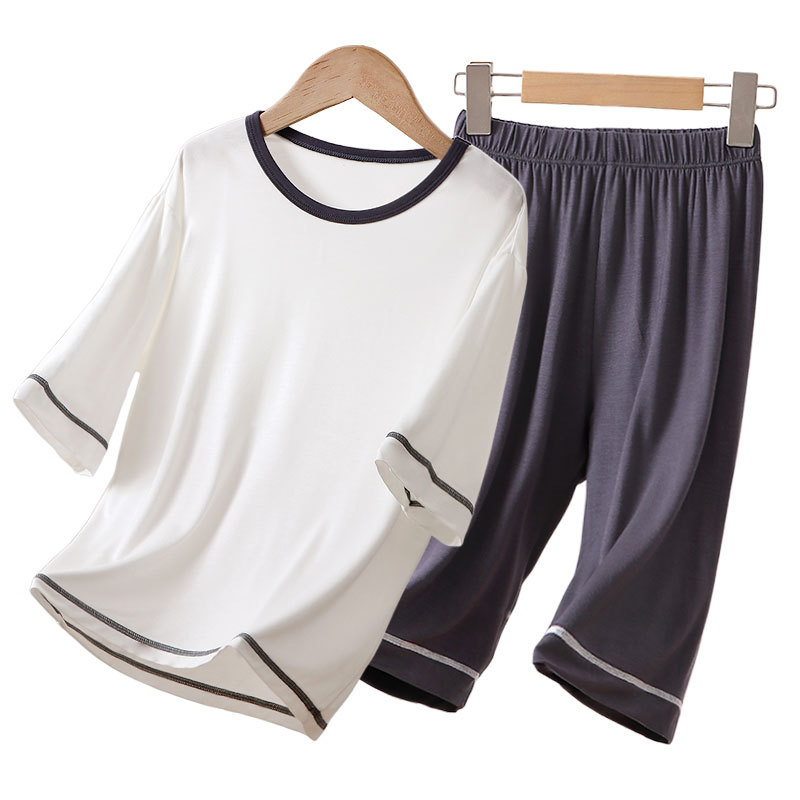 아동용 잠옷, 에어컨 의류, 여름용 얇은 남아 및 여아용 반팔 아이스 실크 모달 슈트, 대형 아동용 가정복