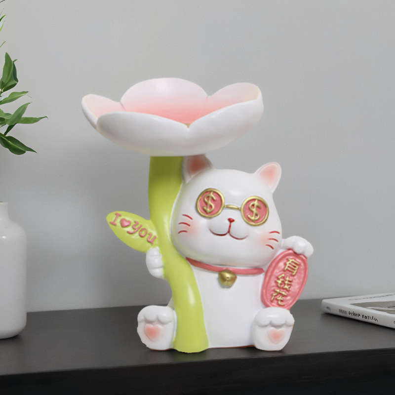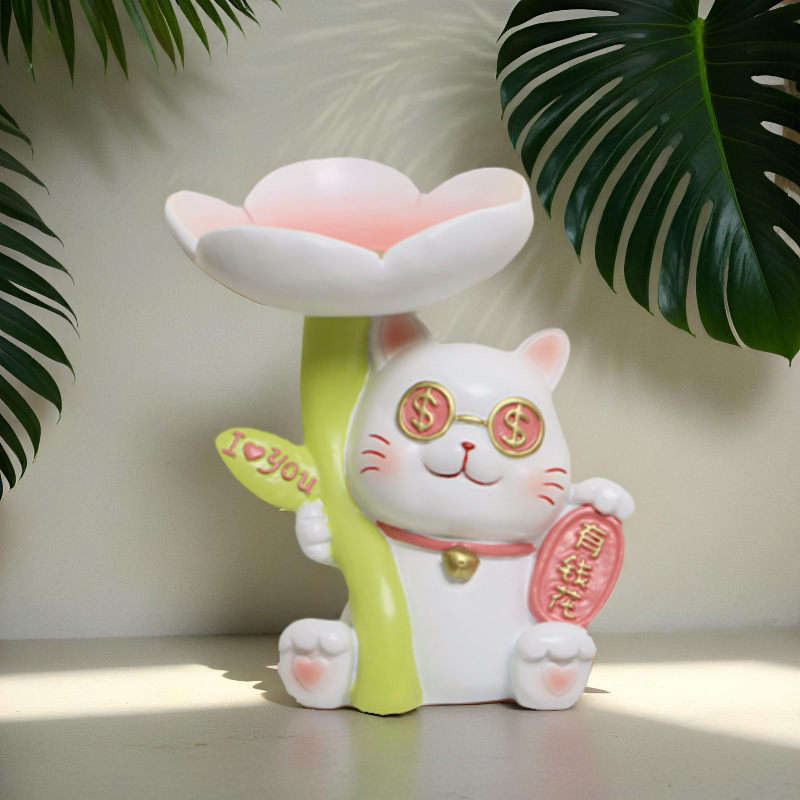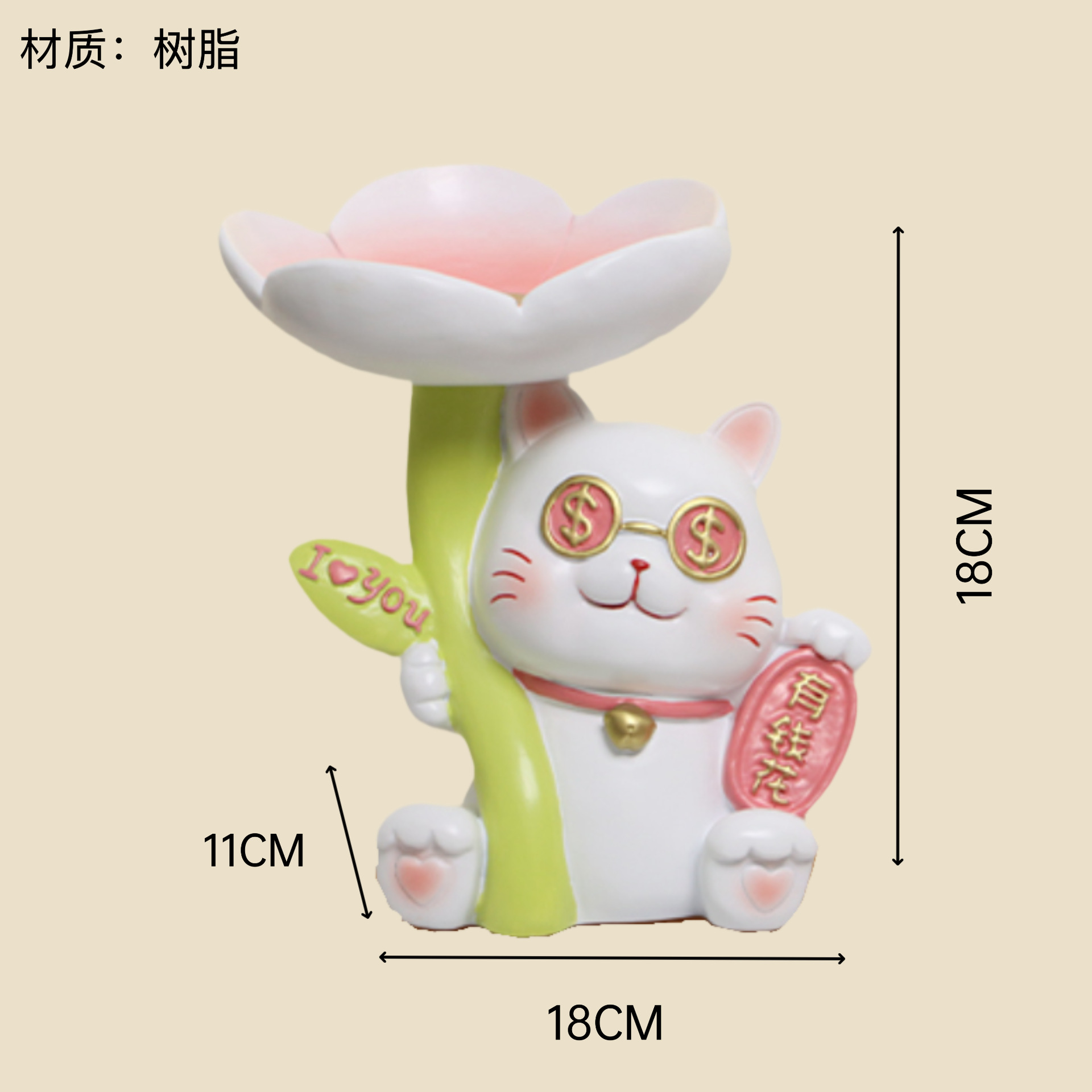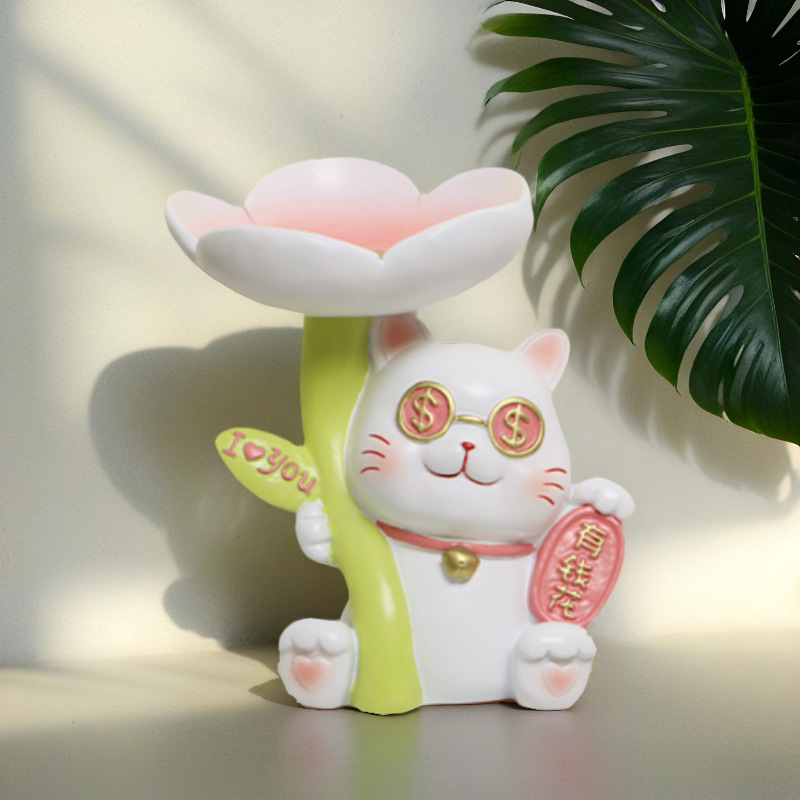 • 행운의 귀여운 고양이 꽃꽂이 + 흰색 나무 프레임