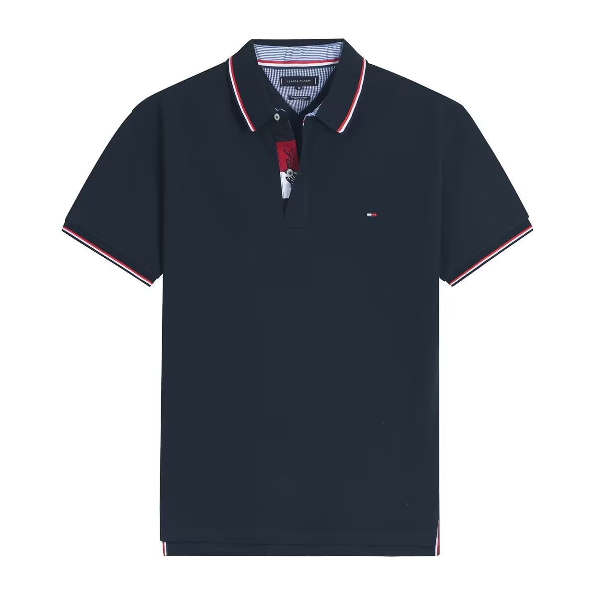 여름 토미 다채로운 칼라 트렌디 한 반팔 남성 비즈니스 캐주얼 통기성 티셔츠 옷깃 자수 코튼 컬러 블록 폴로 셔츠