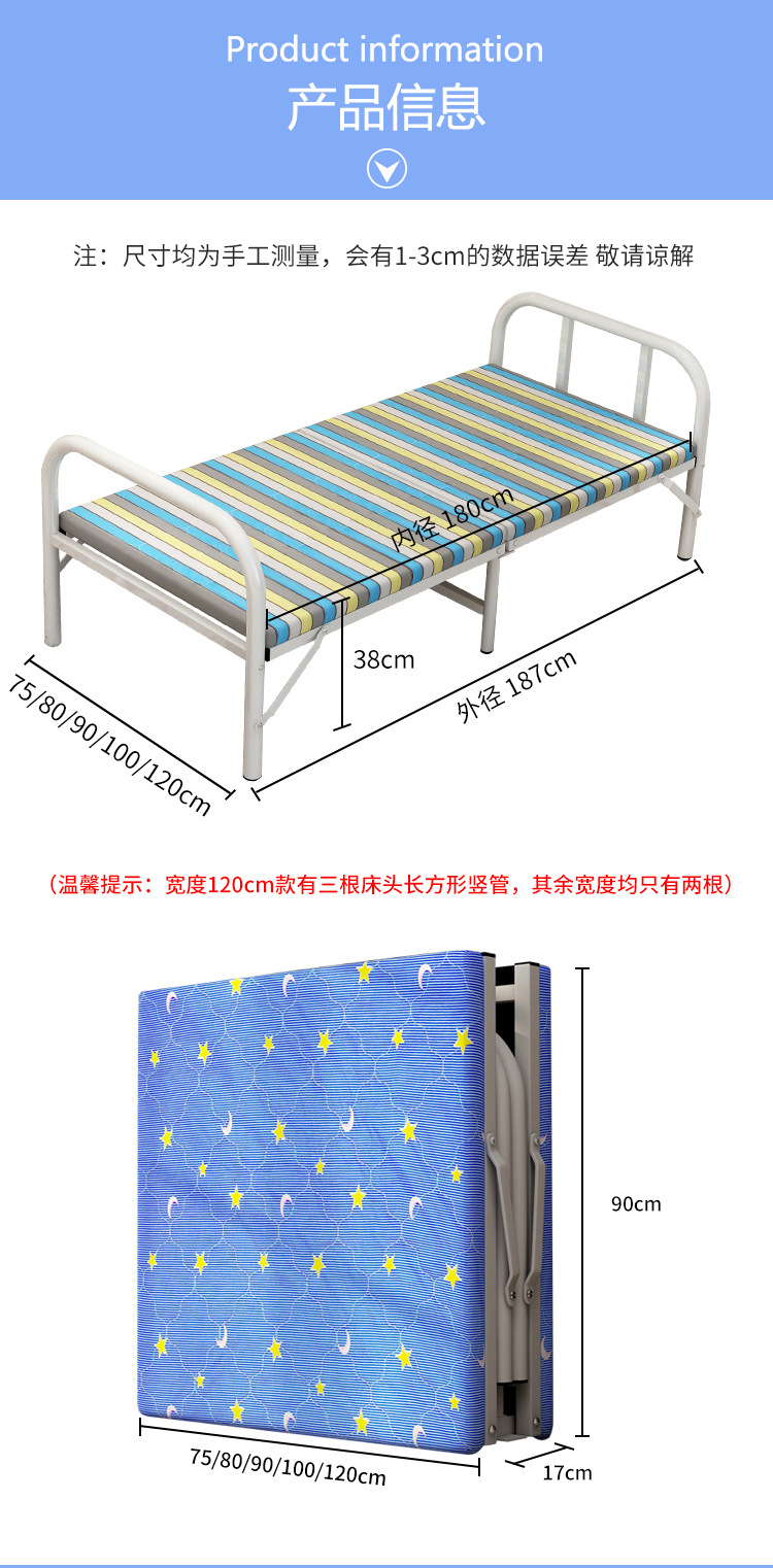 접이식 침대 싱글 침대 홈 오피스 점심 시간 침대 간이 침대 하드 침대 휴대용 임대 집 철제 침대스토어 가기