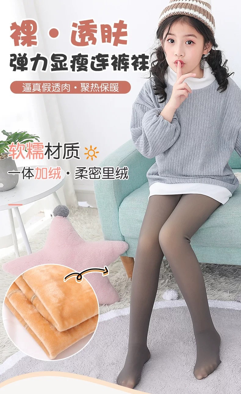 아동 패션 가짜 반투명 레깅스 가을 겨울 벨벳 한국식 팬티 스타킹 유행 소녀 겨울 겉옷 두꺼운