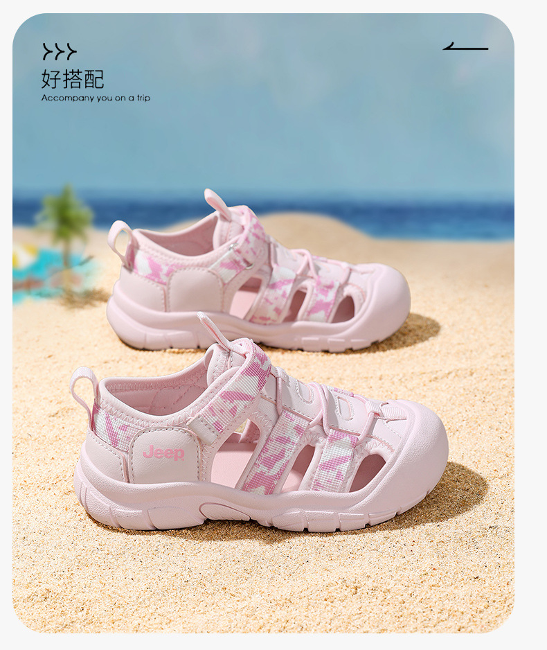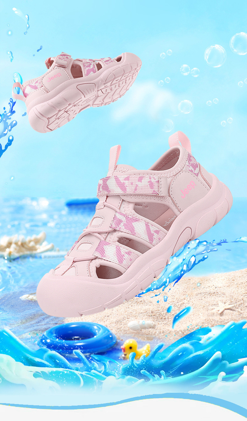 지프 어린이 샌들 야외 소녀 미끄럼 방지 비치 슈즈 2025 여름 새 소년 통기성 추적 신발