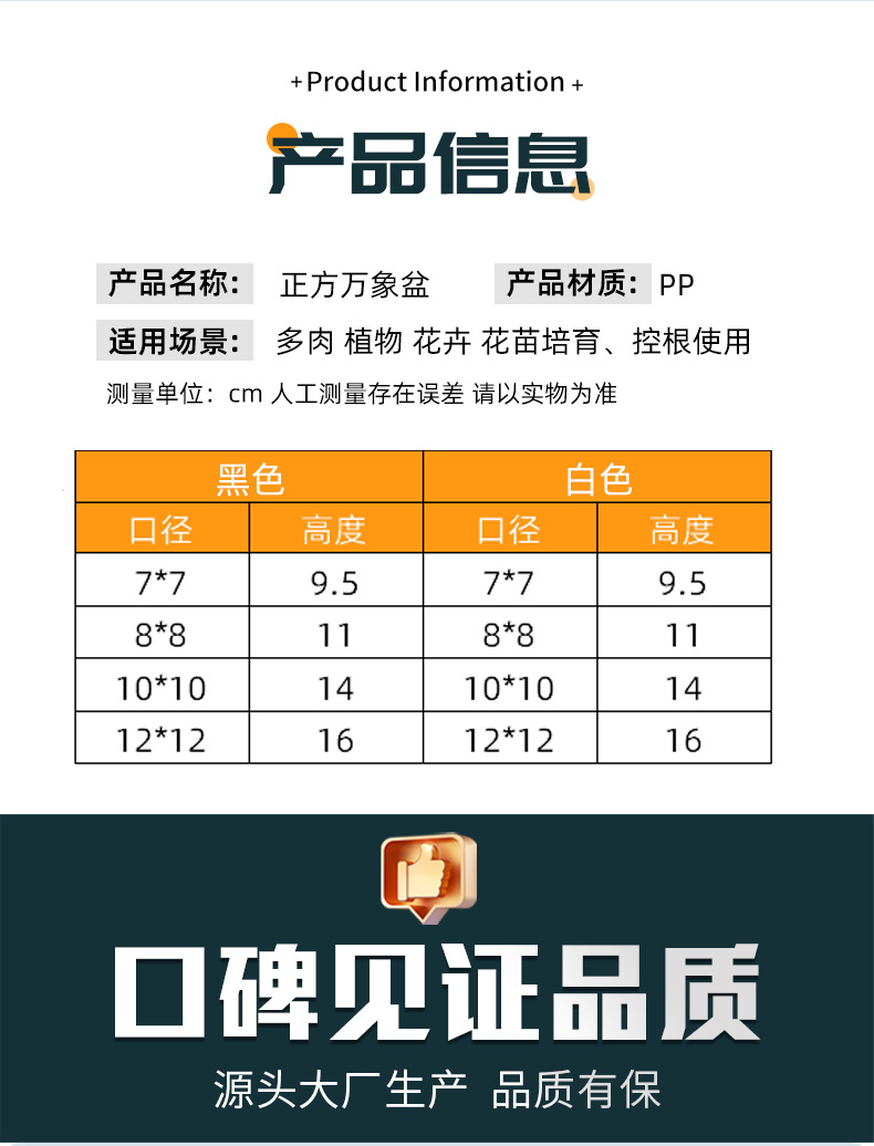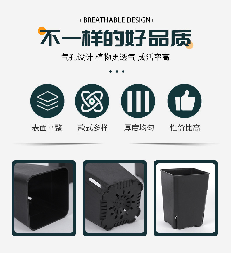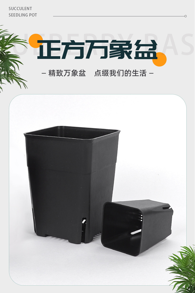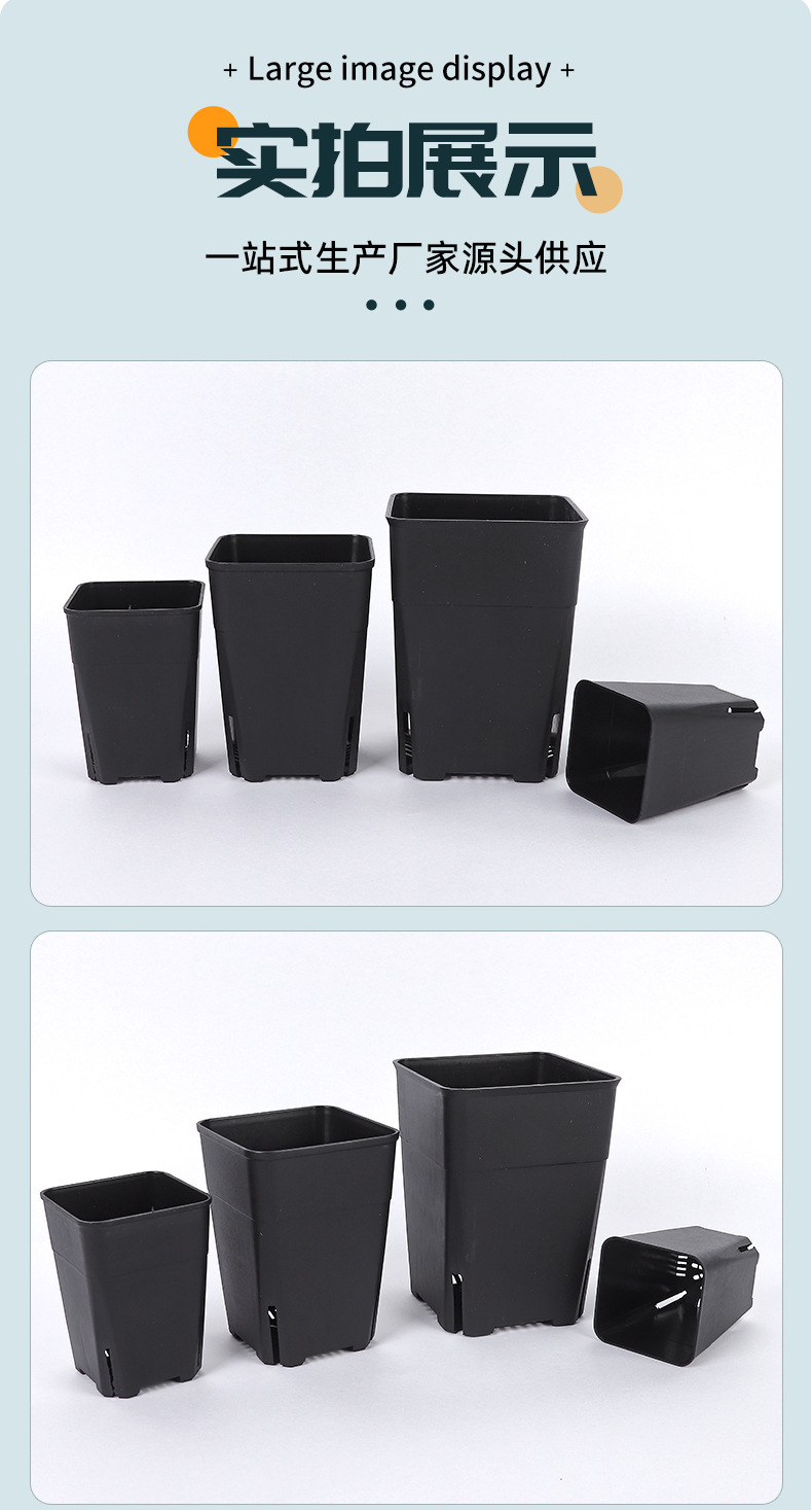 다육식물 화분, 검정색 사각 화분, 높은 뿌리 화분, 제조업체 도매 기지, 정사각형 화분, 크로스보더 무역