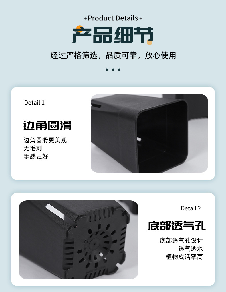 다육식물 화분, 검정색 사각 화분, 높은 뿌리 화분, 제조업체 도매 기지, 정사각형 화분, 크로스보더 무역스토어 가기