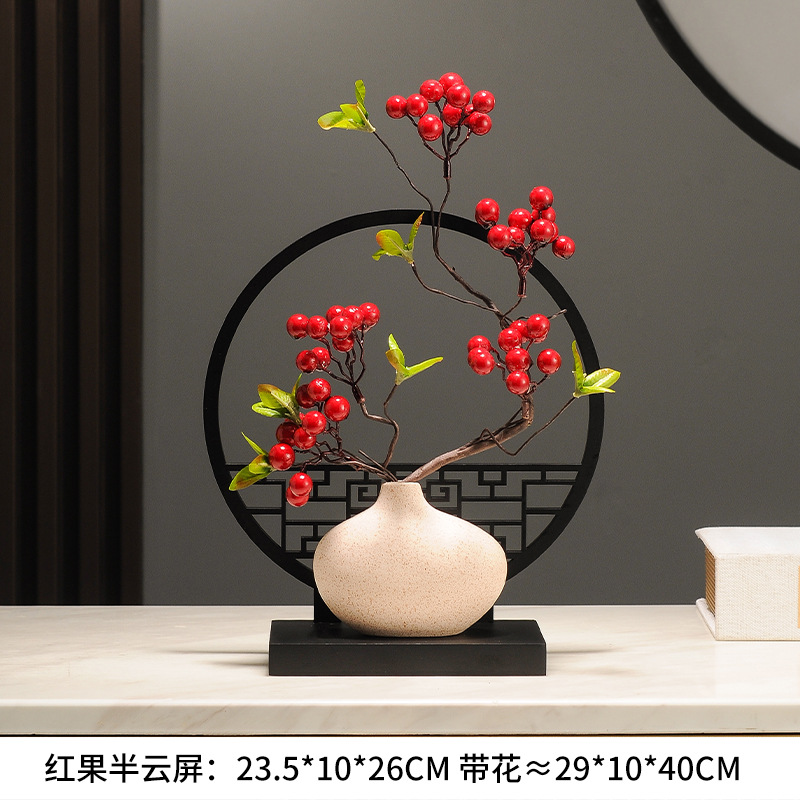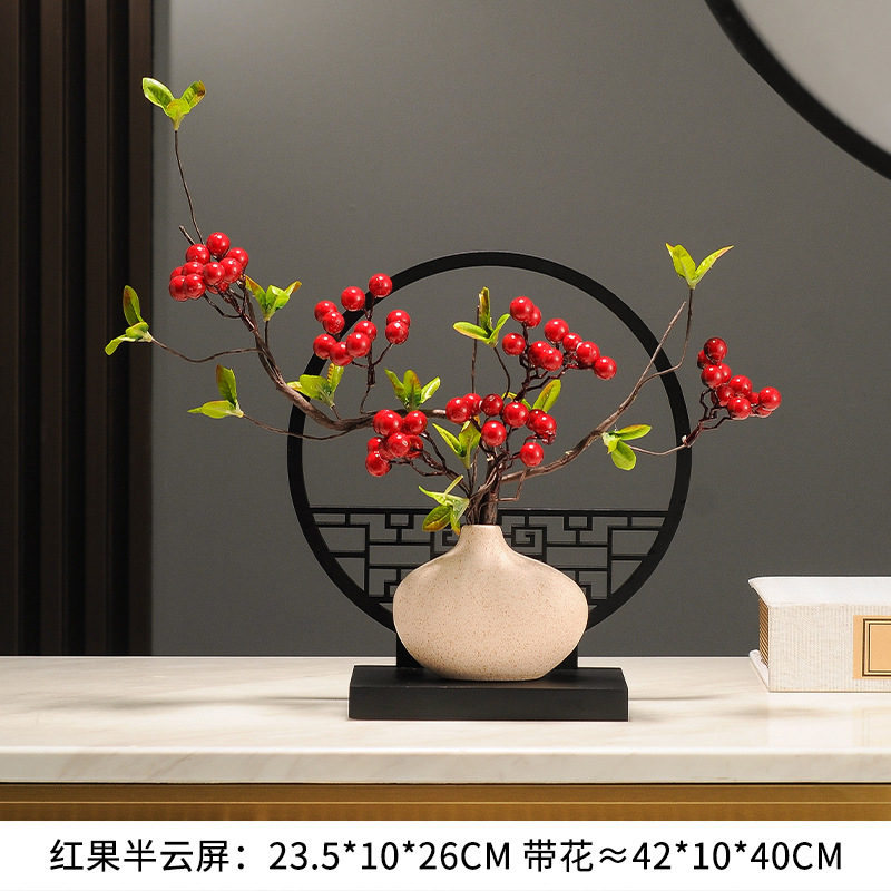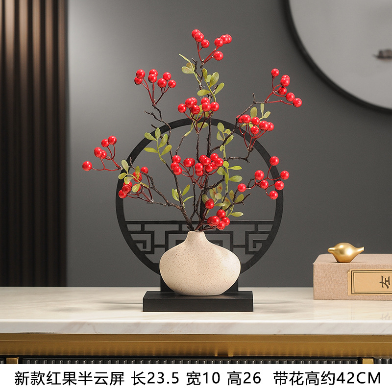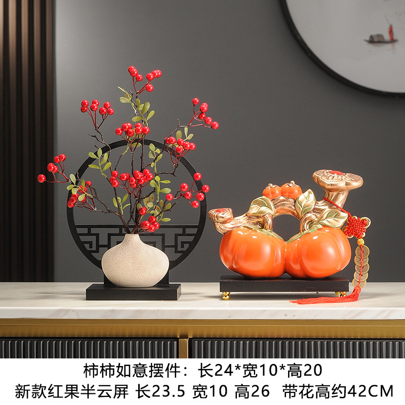 • 붉은 과일 반구름 스크린 - 나무 모양 + 감 루이 장식품