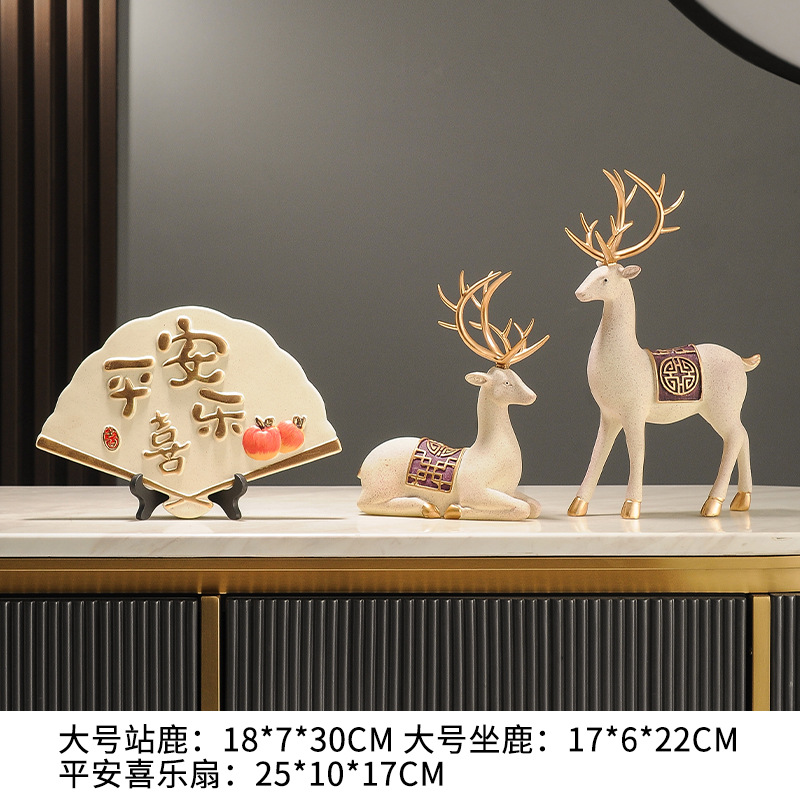 • 평화와 기쁨의 부채 + 큰 사슴 한 쌍