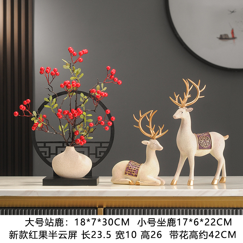 • 붉은 열매 반구름 스크린 - 나무 모양 + 큰 사슴 한 쌍