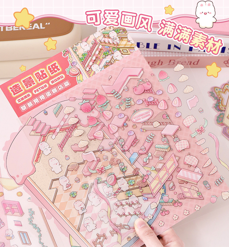 초대형 조경 스티커 13.0 입체 소형 장면 학생과 어린이 재미있는 감압 DIY 수제 콜라주스토어 가기