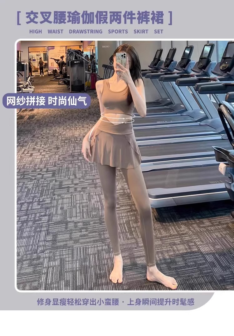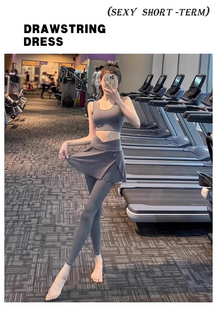 플러스 사이즈 여성용 요가 팬츠 봄 가을 투피스 스커트 팬츠 기모 러닝 빅사이즈 스포츠 레깅스 피트니스 의류 세트스토어 가기