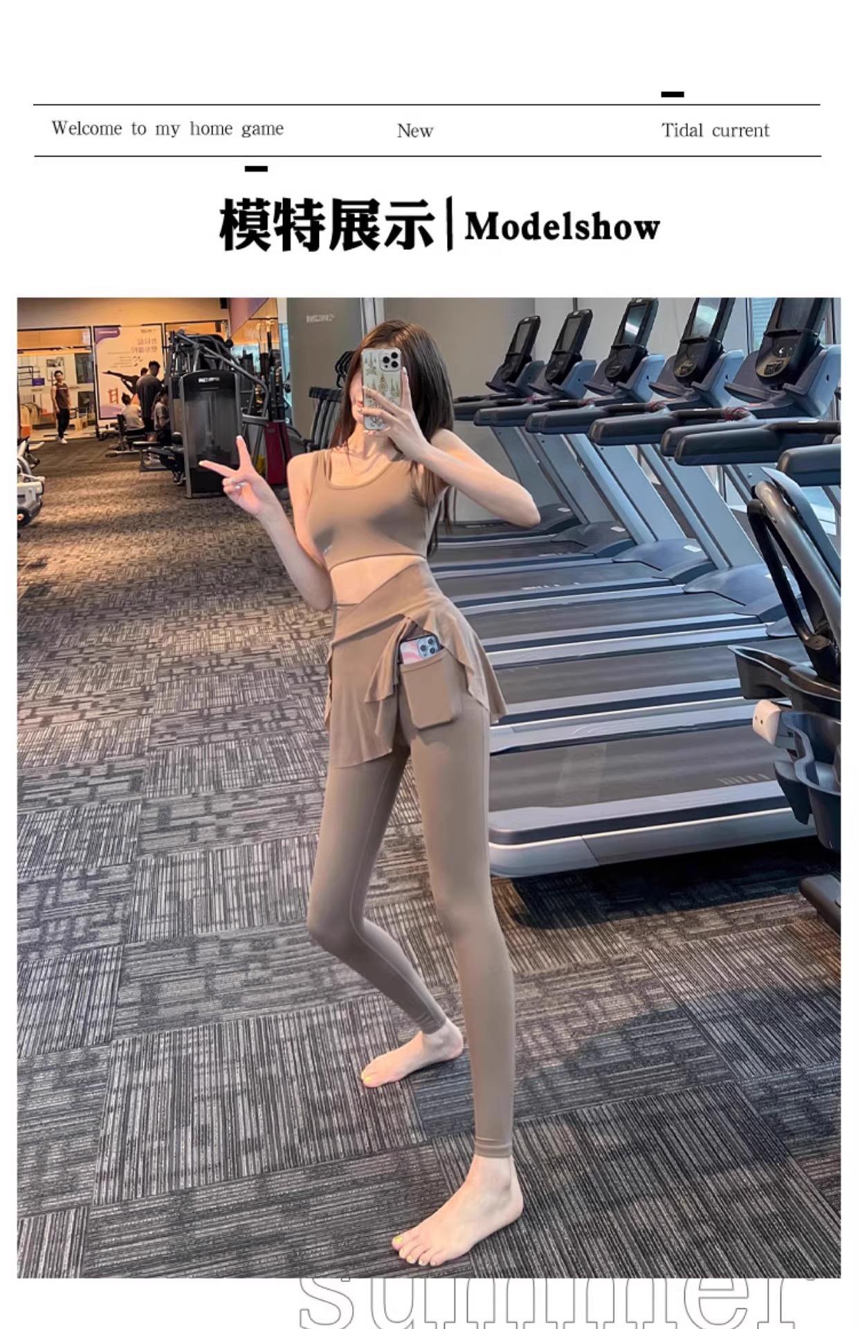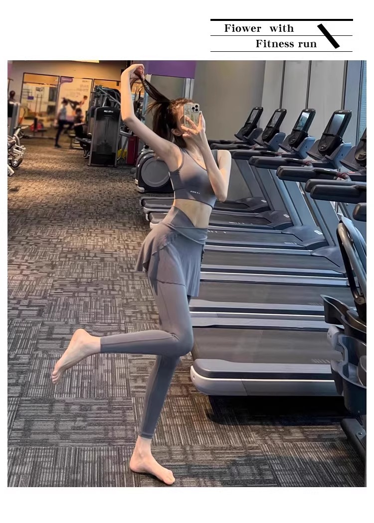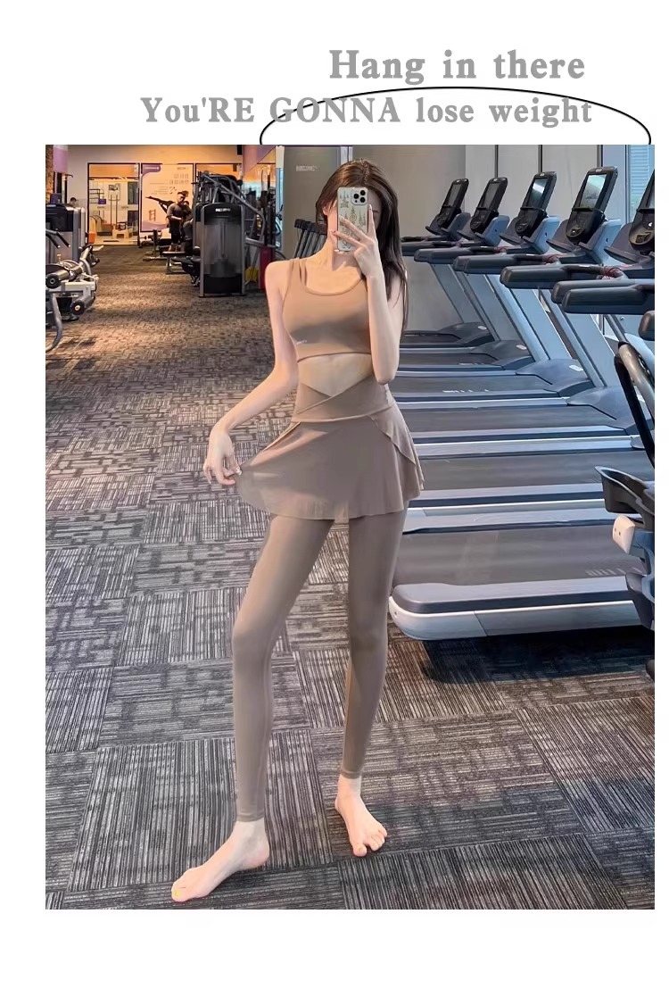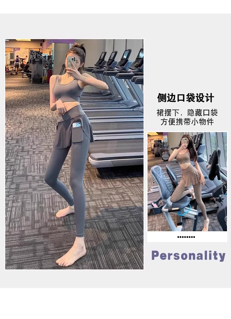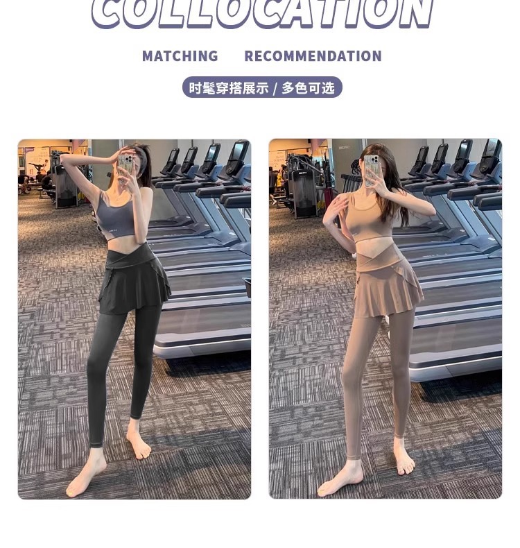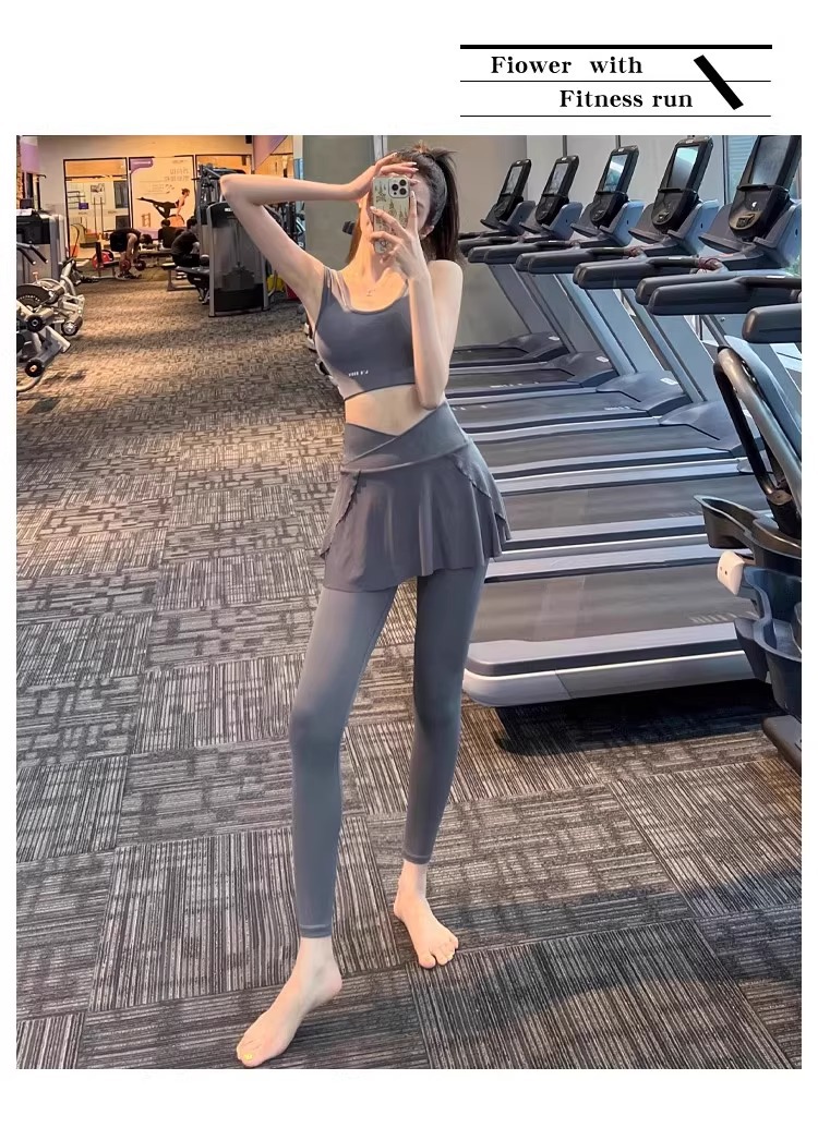 플러스 사이즈 여성용 요가 팬츠 봄 가을 투피스 스커트 팬츠 기모 러닝 빅사이즈 스포츠 레깅스 피트니스 의류 세트
