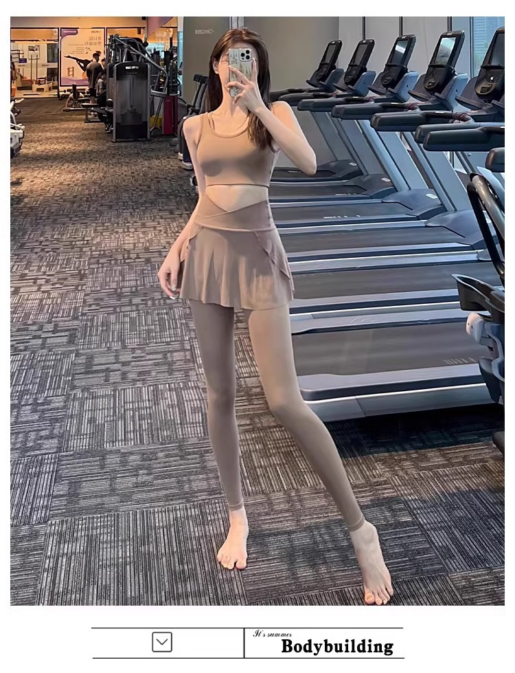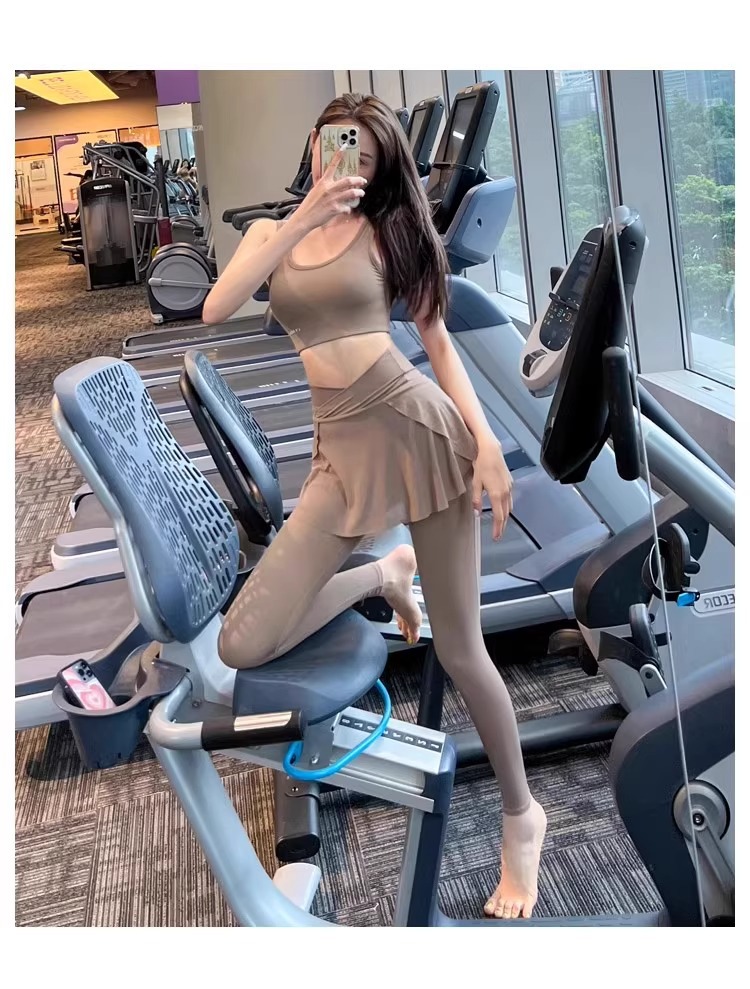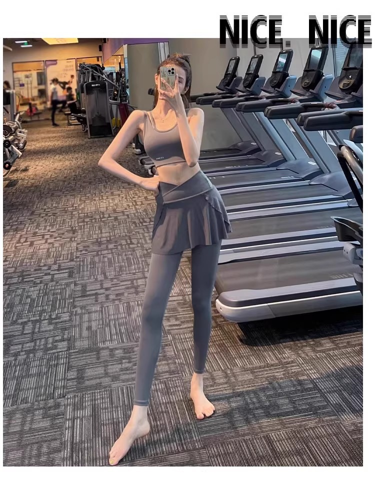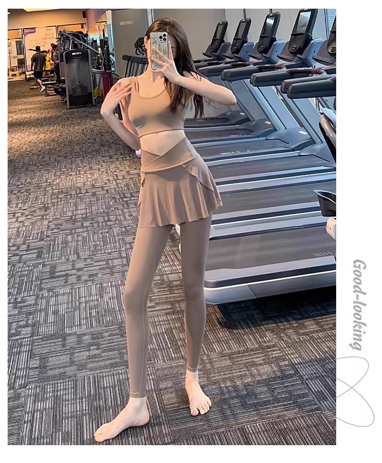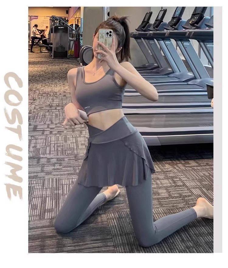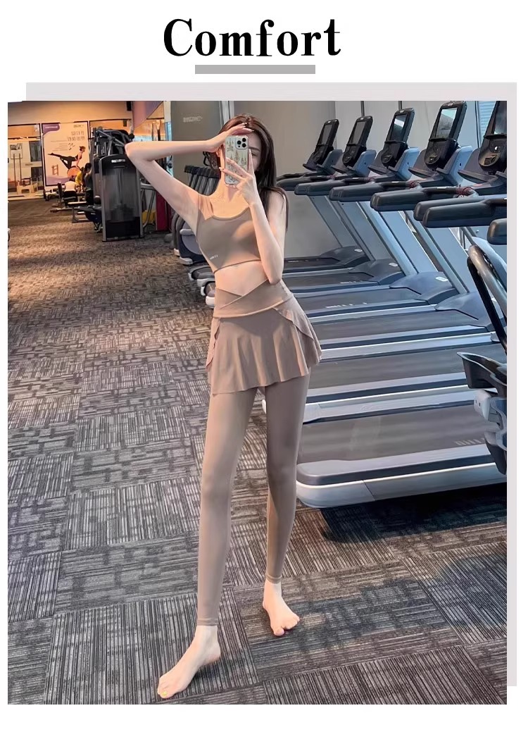 플러스 사이즈 여성용 요가 팬츠 봄 가을 투피스 스커트 팬츠 기모 러닝 빅사이즈 스포츠 레깅스 피트니스 의류 세트