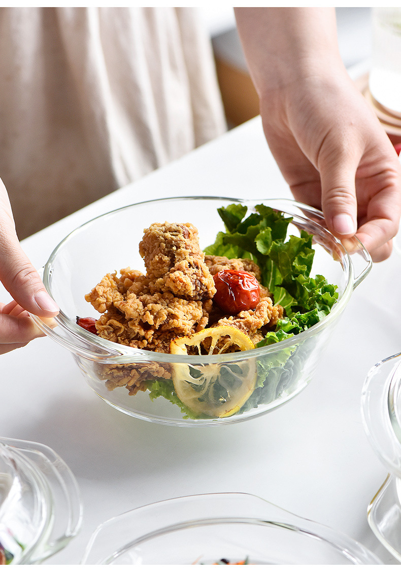 전자 레인지 가정용 내열기구 가열 컨테이너 수프 그릇 솔리드 컬러를위한 뚜껑 유리 그릇 특수 그릇 찐 계란 국수 그릇