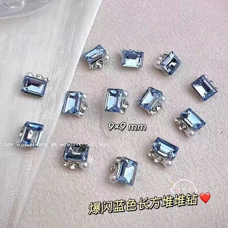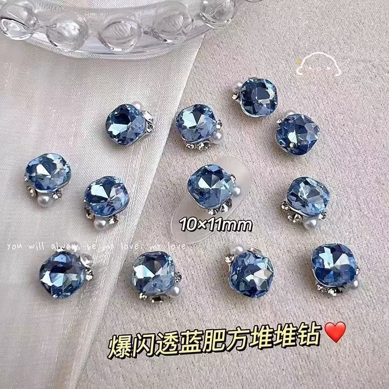 반투명 블루 다이아몬드 마감, 편심된 하트, 직사각형 하트, 뚱뚱한 사각형 도끼 다이아몬드, 슈퍼 플래시 라이트 럭셔리, 매니큐어 샵과 동일한 스타일스토어 가기