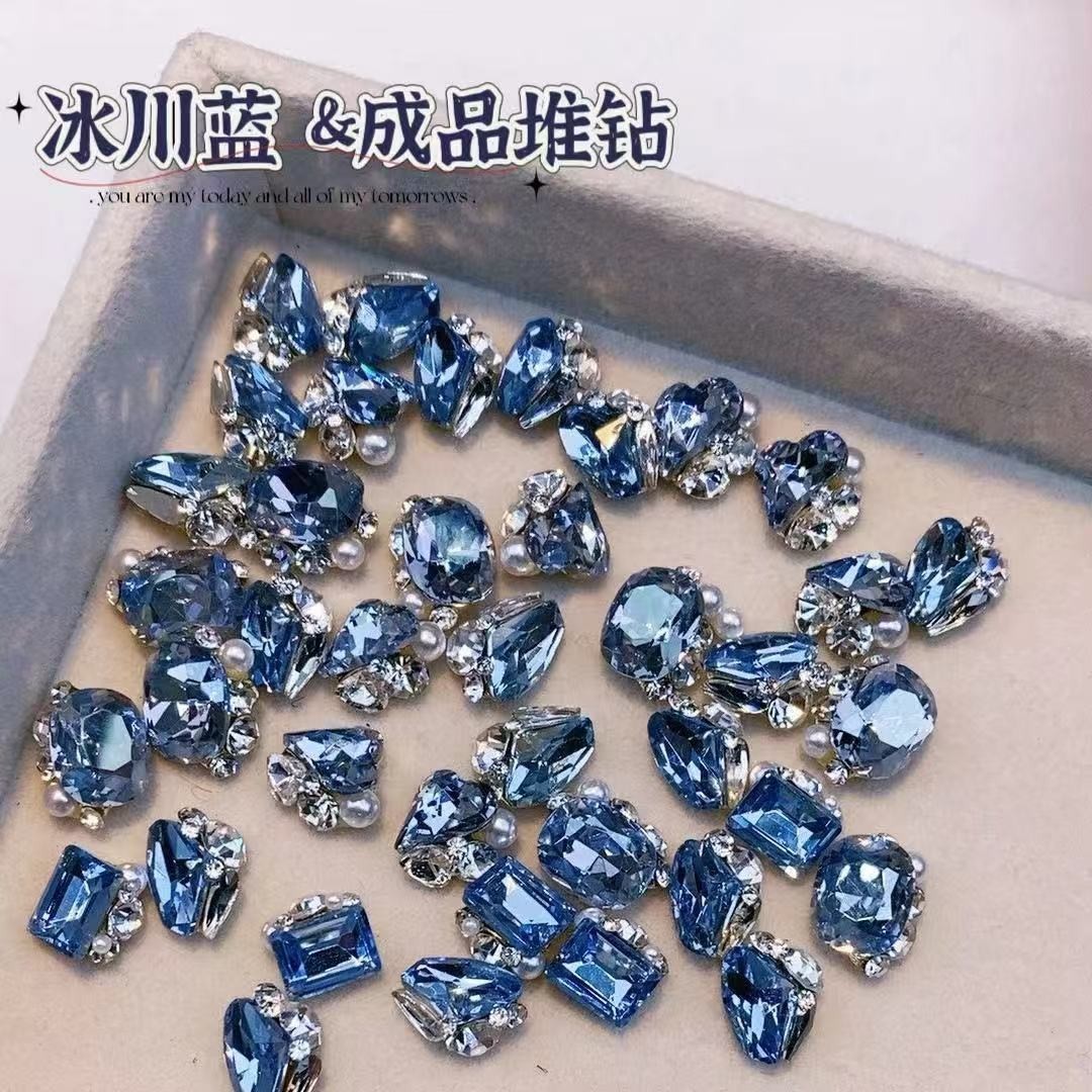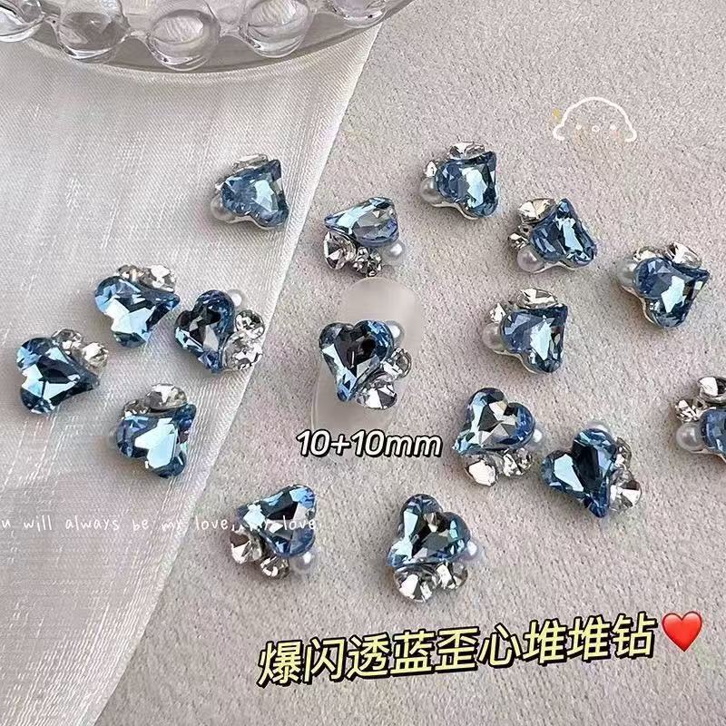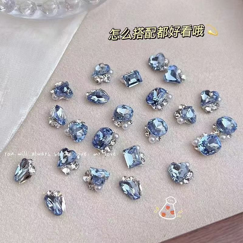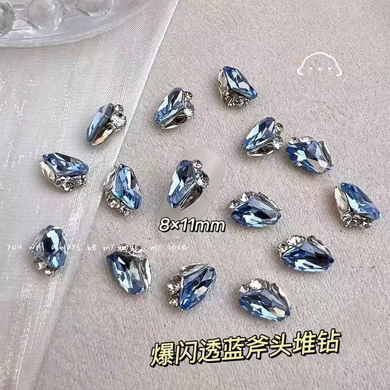 반투명 블루 다이아몬드 마감, 편심된 하트, 직사각형 하트, 뚱뚱한 사각형 도끼 다이아몬드, 슈퍼 플래시 라이트 럭셔리, 매니큐어 샵과 동일한 스타일