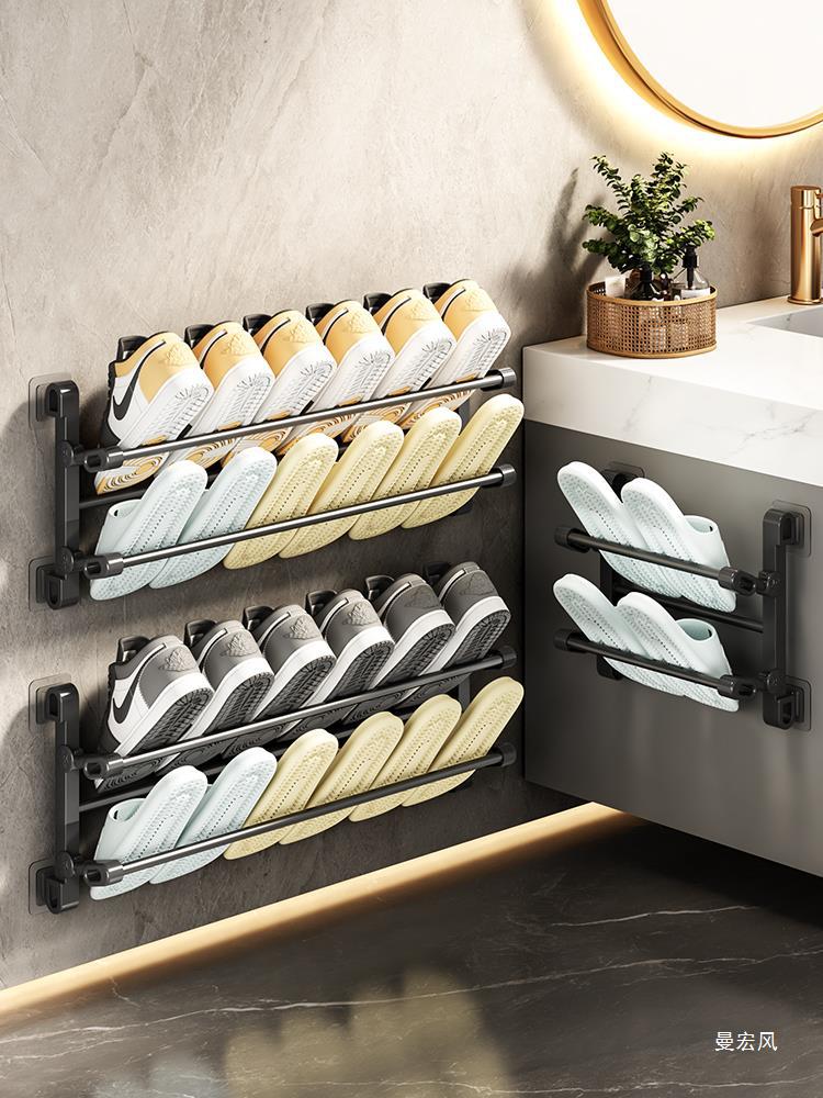 문 뒤에 신발장, 다기능 슬리퍼 랙, 벽걸이형 욕실 접이식 신발장, 구멍이 없는 욕실 신발 보관함