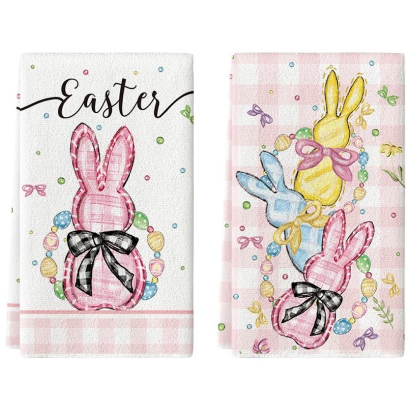 국경 간 아마존 뜨거운 판매 부활절 주방 수건 재미있는 토끼 인쇄 흡수성 휴일 장식 식기 세척 수건
