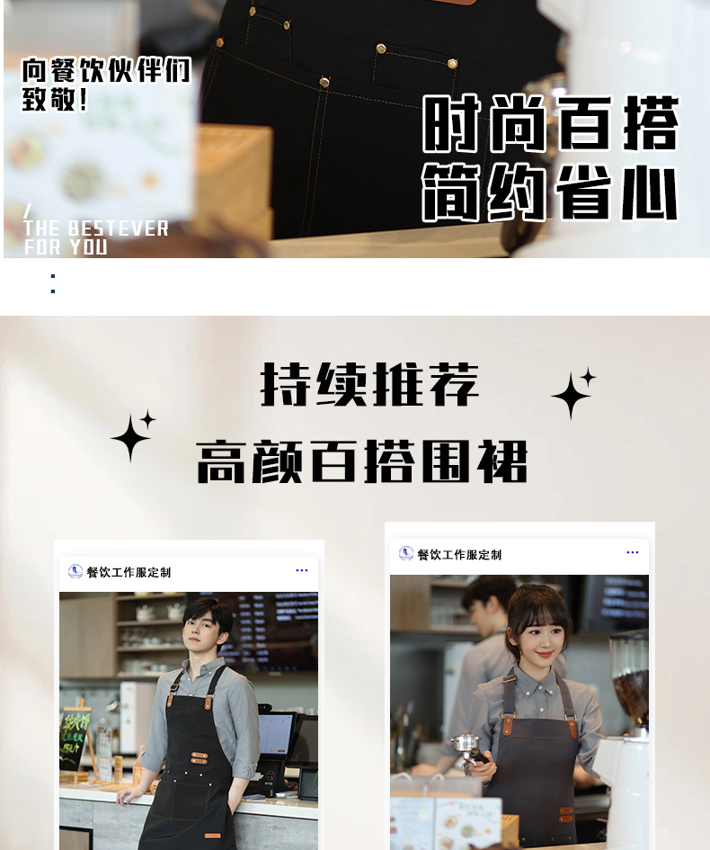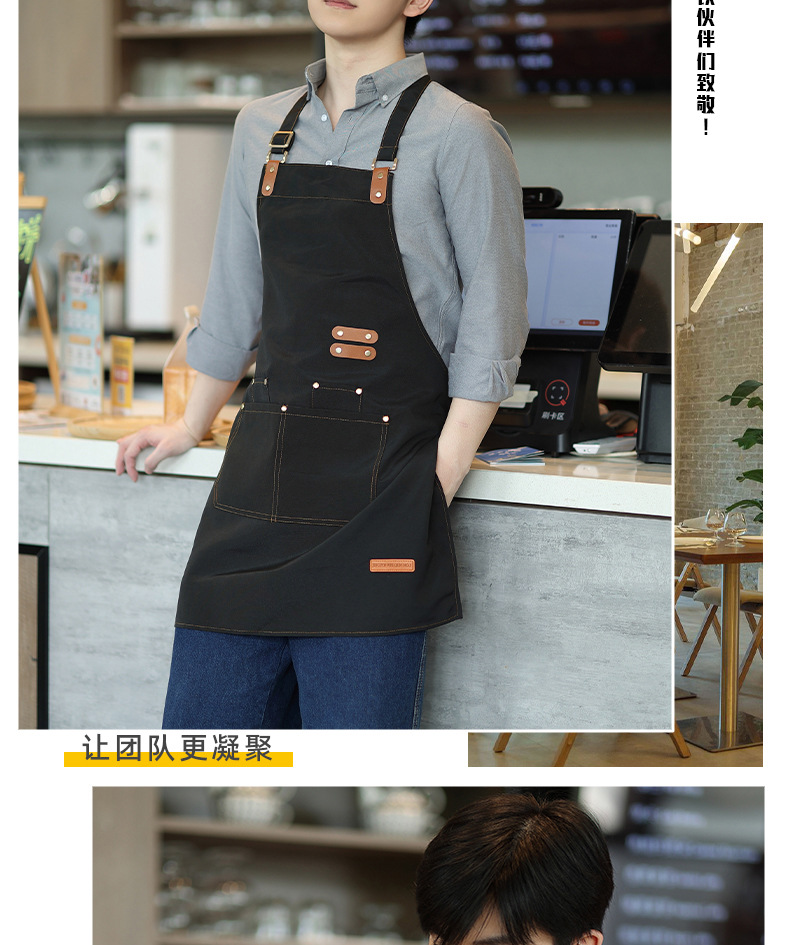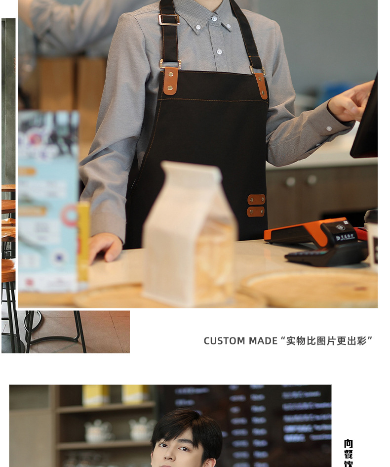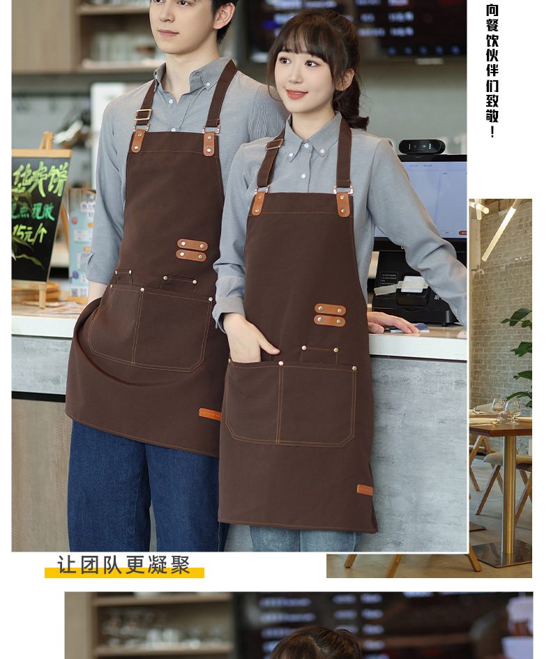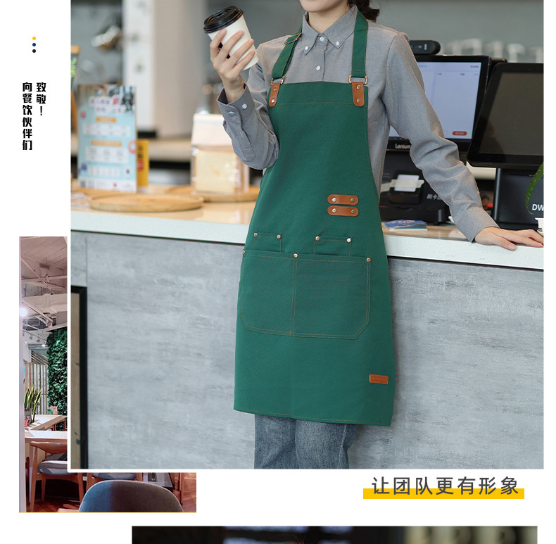 앞치마 방수 및 내유성 인쇄 케이터링 특별 한 커피 숍 주방 캔버스 작업복 더러운