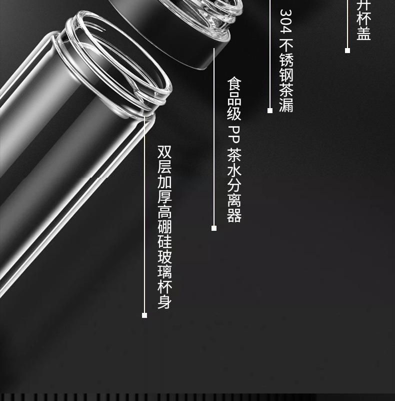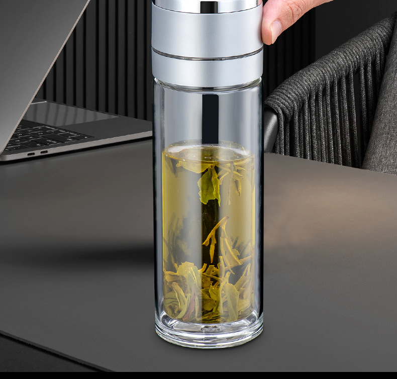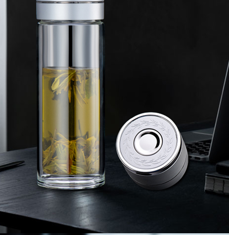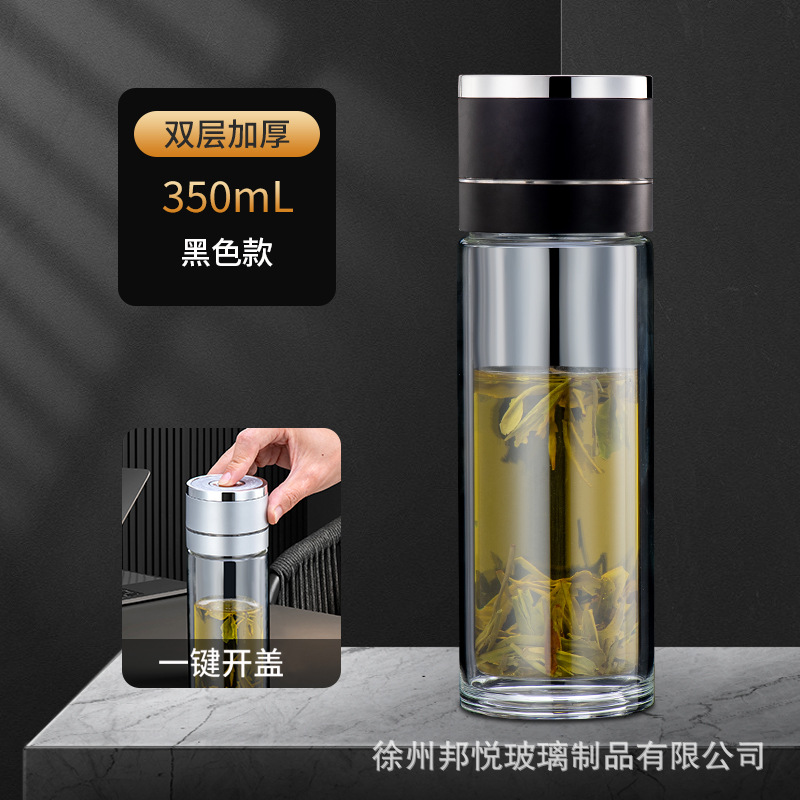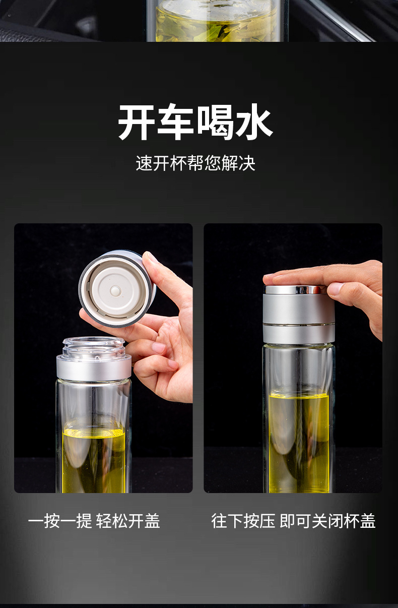 원 버튼 오픈 뚜껑 자동차 더블 유리 남성 사무실 단열 컵 티 컵 티컵 빠른 오픈 티 분리 컵