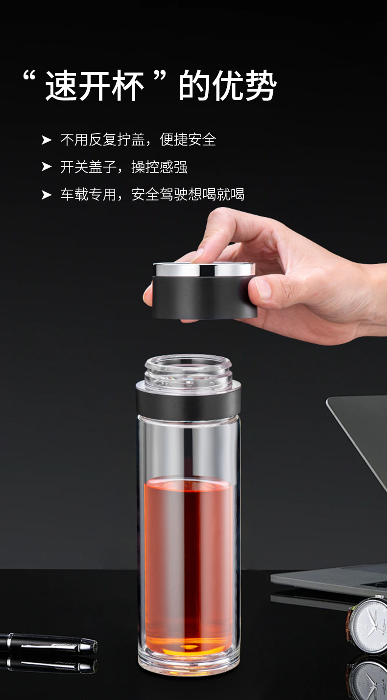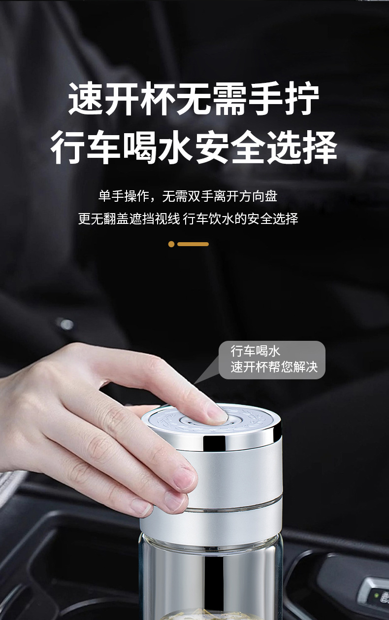 원 버튼 오픈 뚜껑 자동차 더블 유리 남성 사무실 단열 컵 티 컵 티컵 빠른 오픈 티 분리 컵스토어 가기