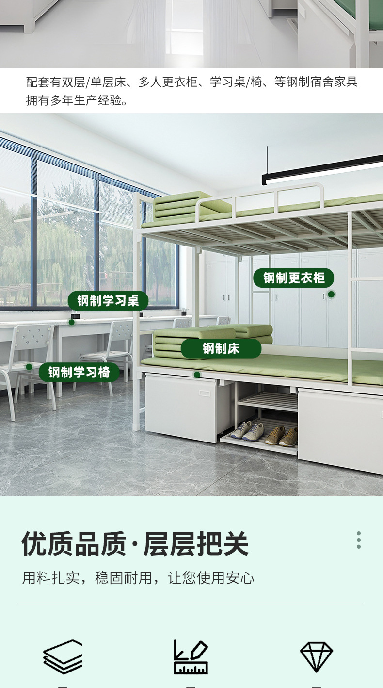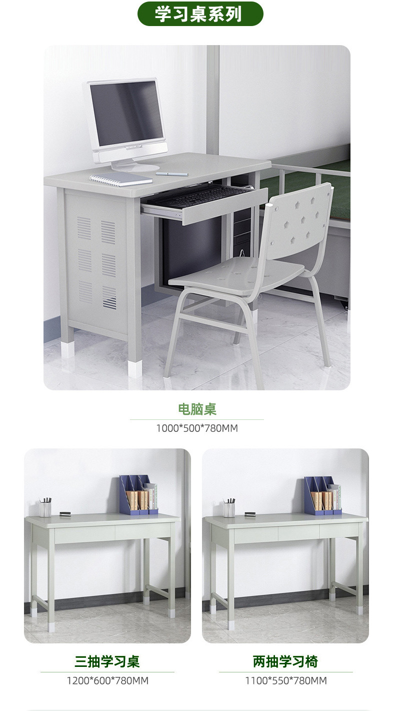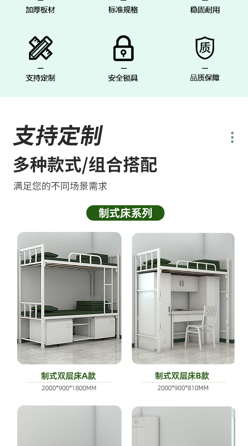 군용 이층침대, 내부 수납장, 높낮이 조절 가능한 철제 이층침대, 잠금장치가 있는 철제 수납장, 학습용 책상 및 의자 세트스토어 가기