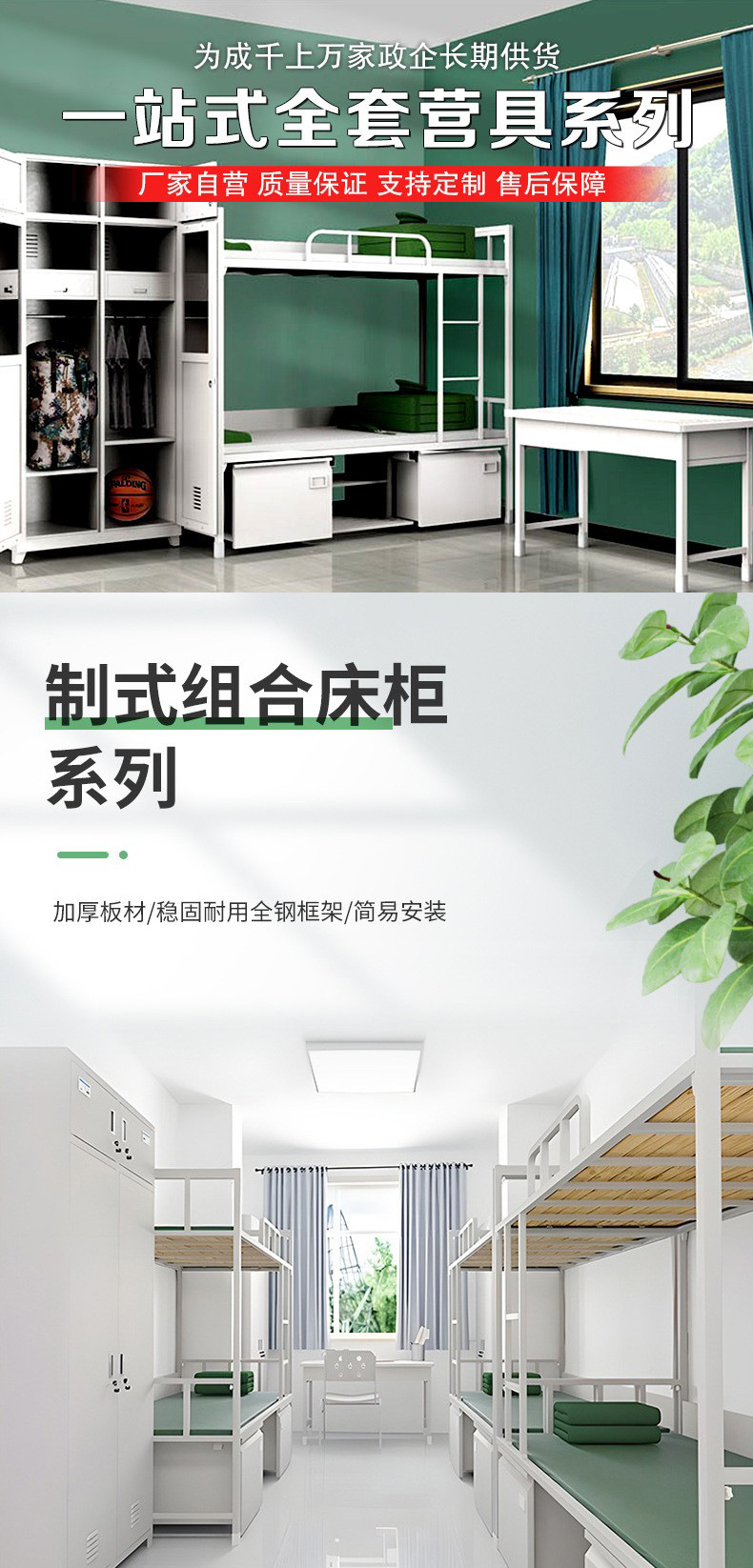 군용 이층침대, 내부 수납장, 높낮이 조절 가능한 철제 이층침대, 잠금장치가 있는 철제 수납장, 학습용 책상 및 의자 세트