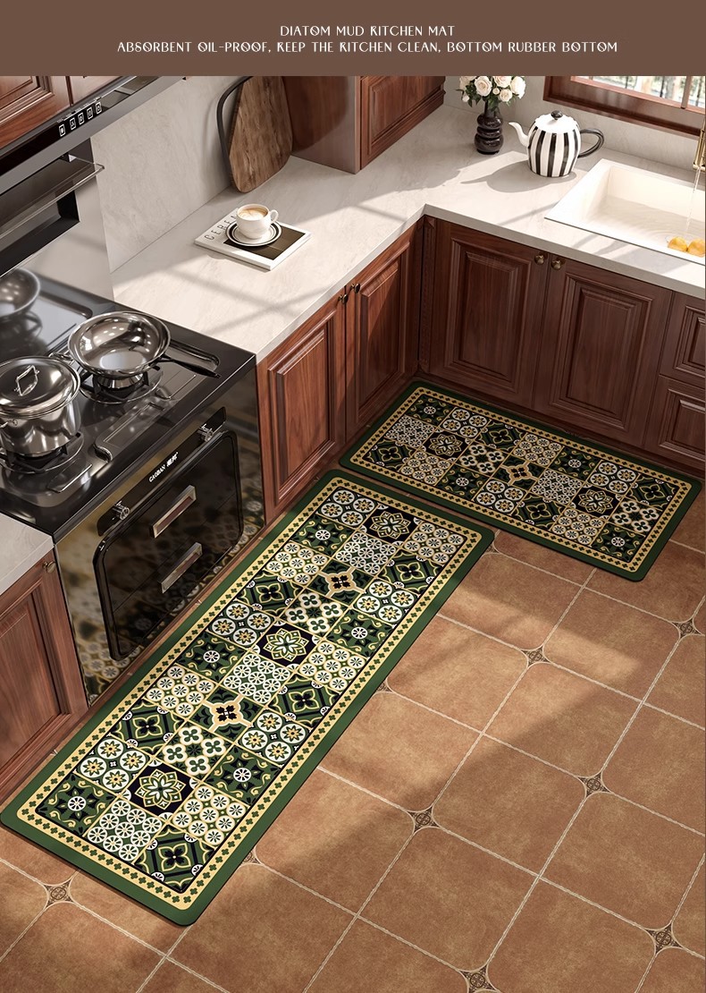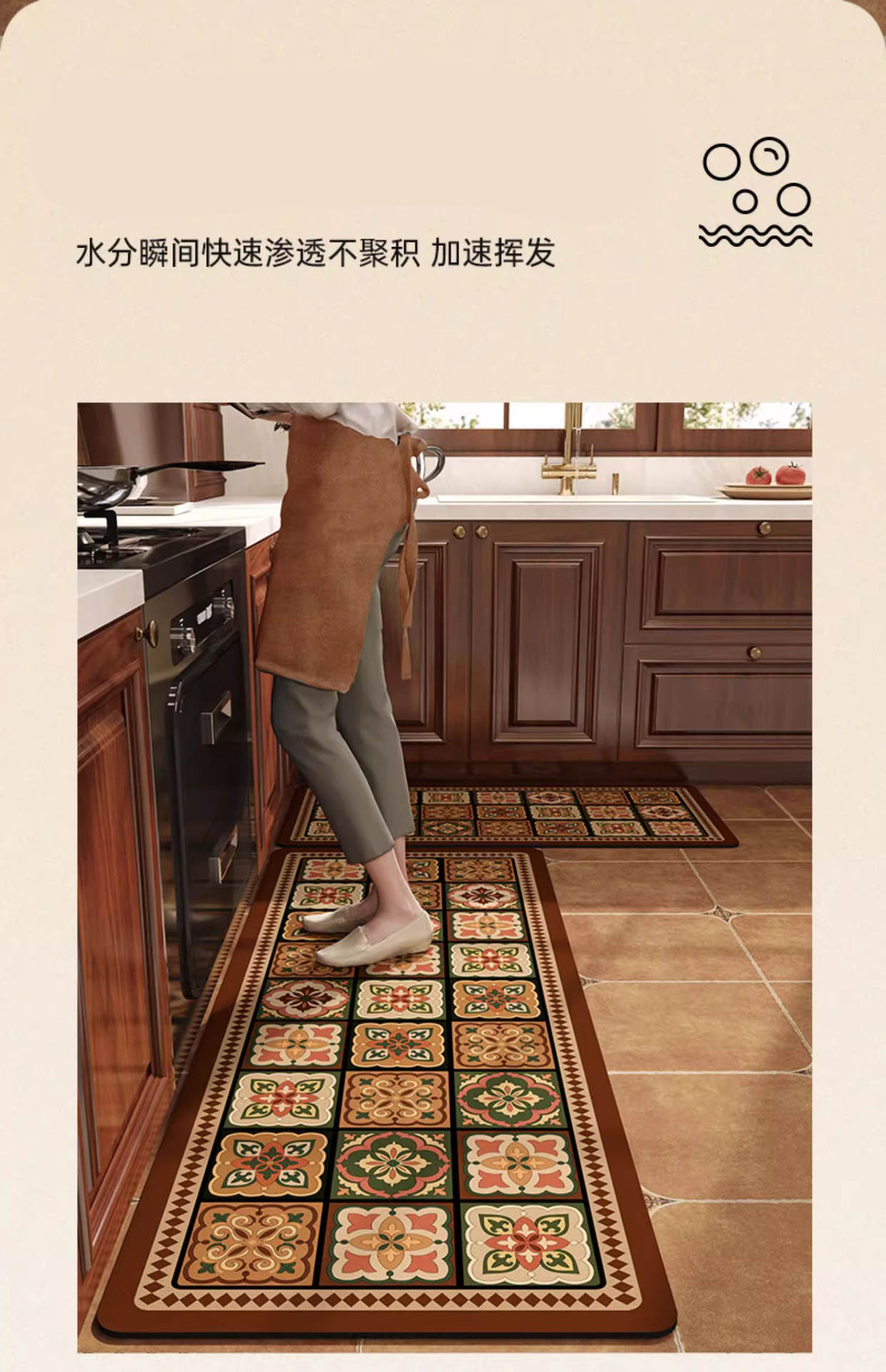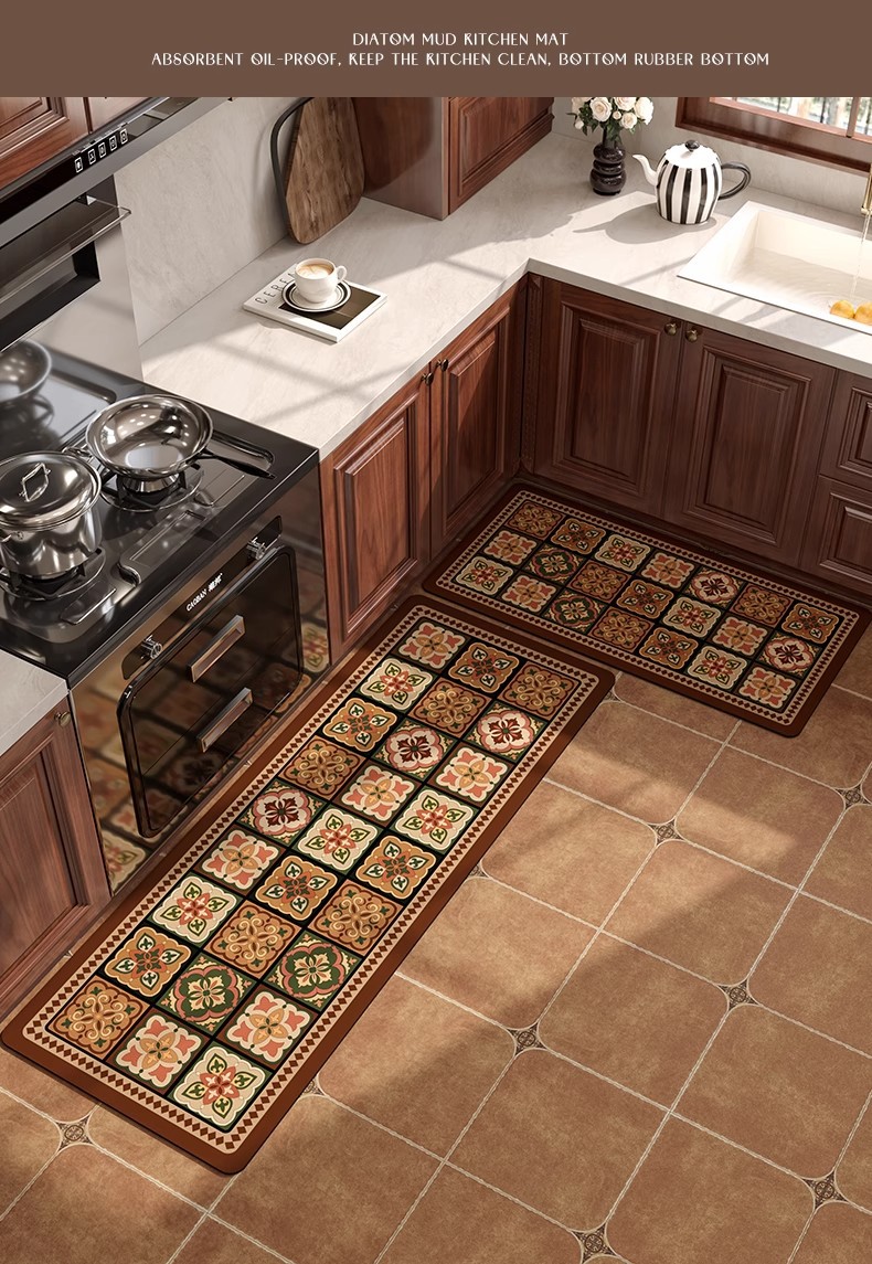 미국 레트로 디 아톰 머드 매트 물 흡수 오일 흡수 비 슬립 발 매트 가정용 긴 먼지 방지 간편한 주방 매트