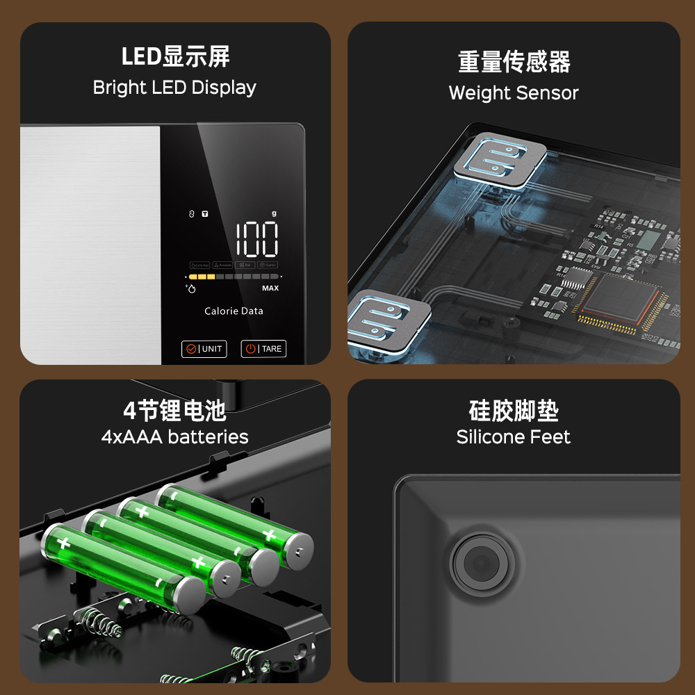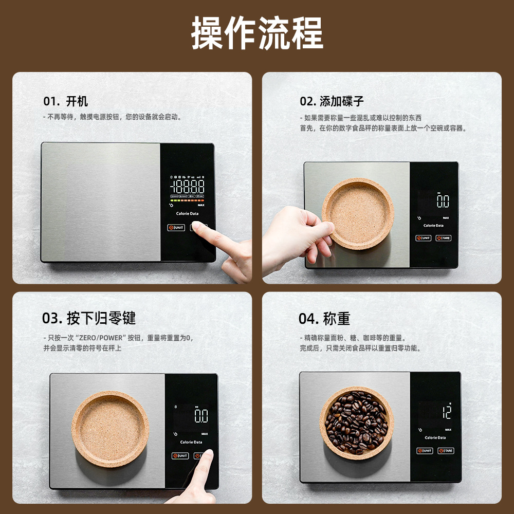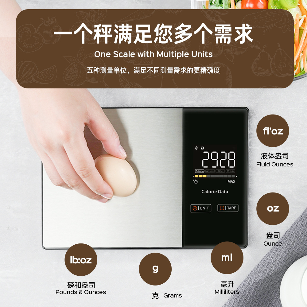 국경 간 새로운 전자 규모 고정밀 영양 규모 가정용 베이킹 주방 규모 스테인레스 스틸 지능형 커피 규모