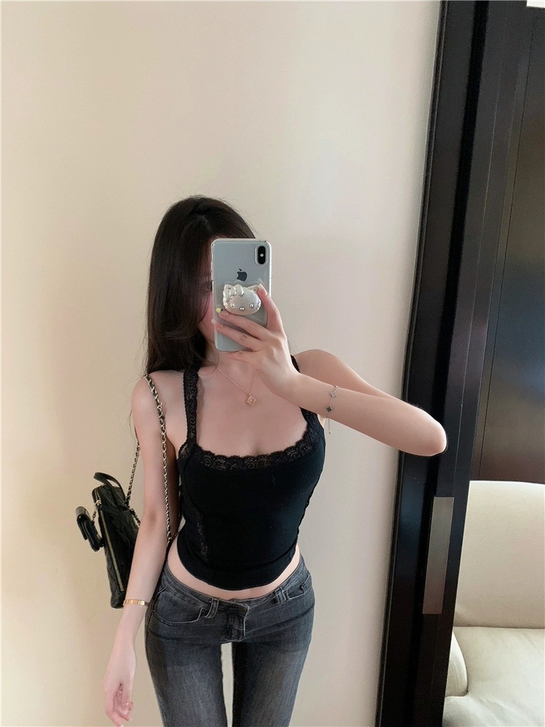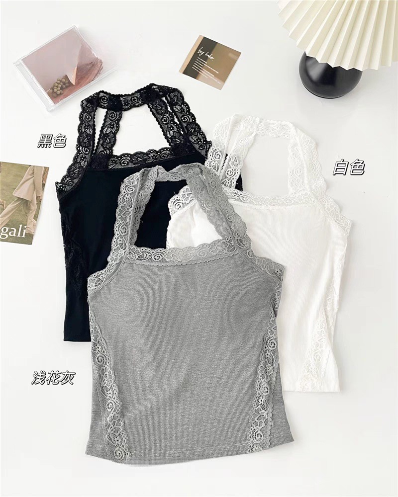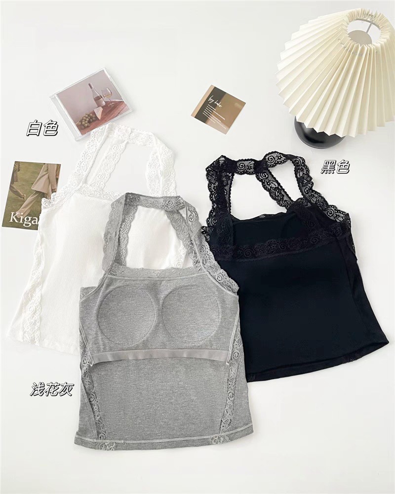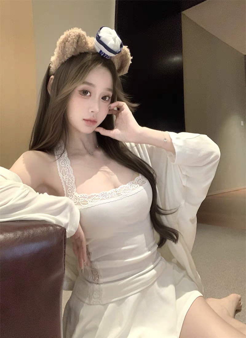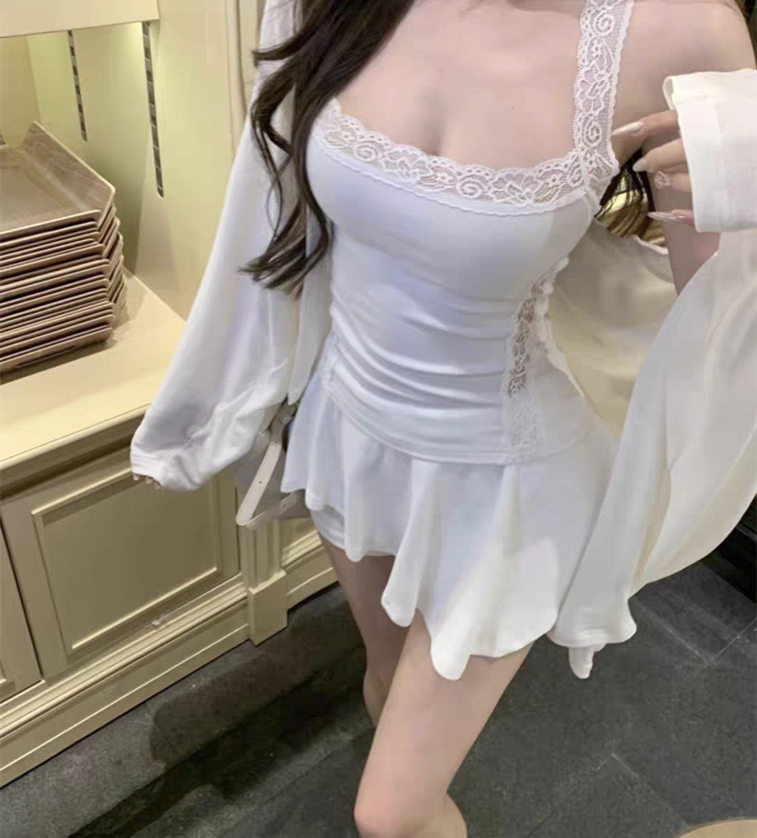 L5309 # 고정 컵 가슴 패드가있는 레이스 스티칭 목 뜨거운 소녀 콘돌 벨트 슬림 핏 외부 착용 내부 코트스토어 가기