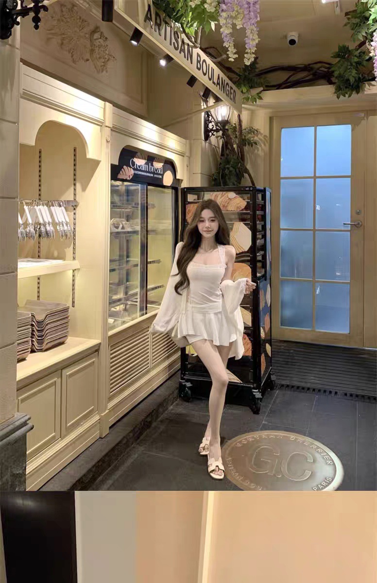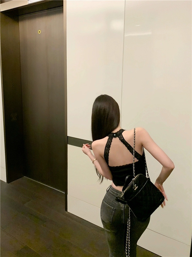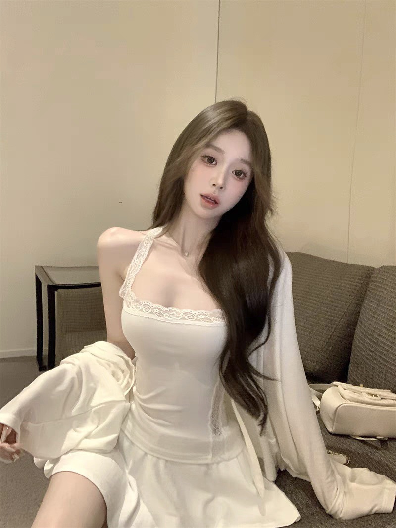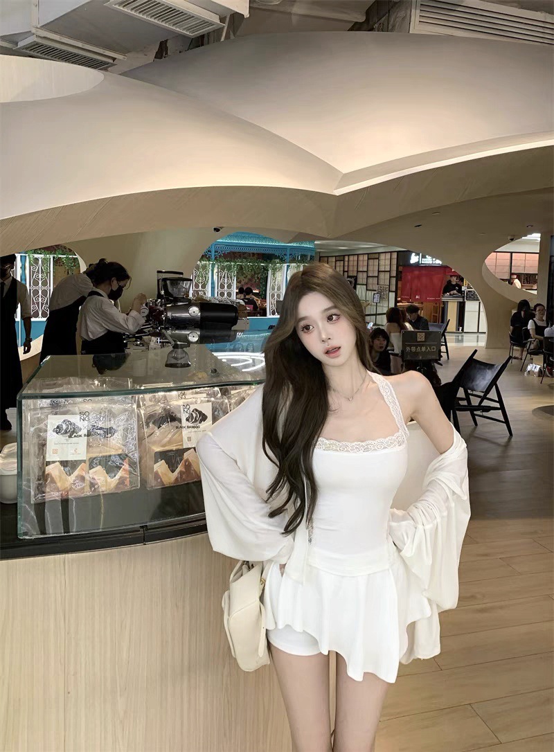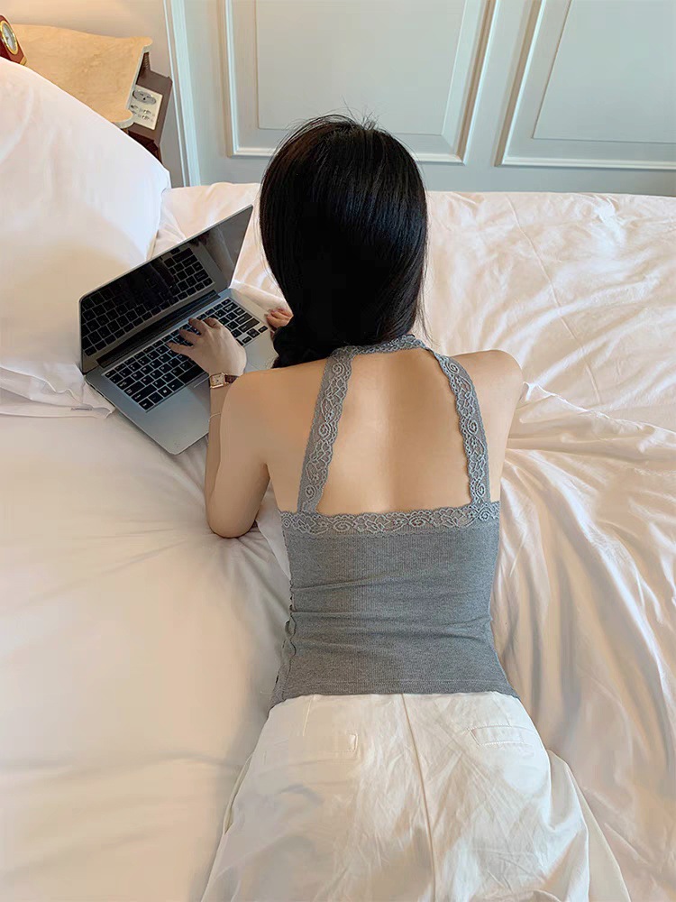 L5309 # 고정 컵 가슴 패드가있는 레이스 스티칭 목 뜨거운 소녀 콘돌 벨트 슬림 핏 외부 착용 내부 코트스토어 가기