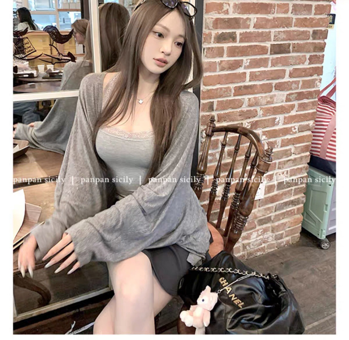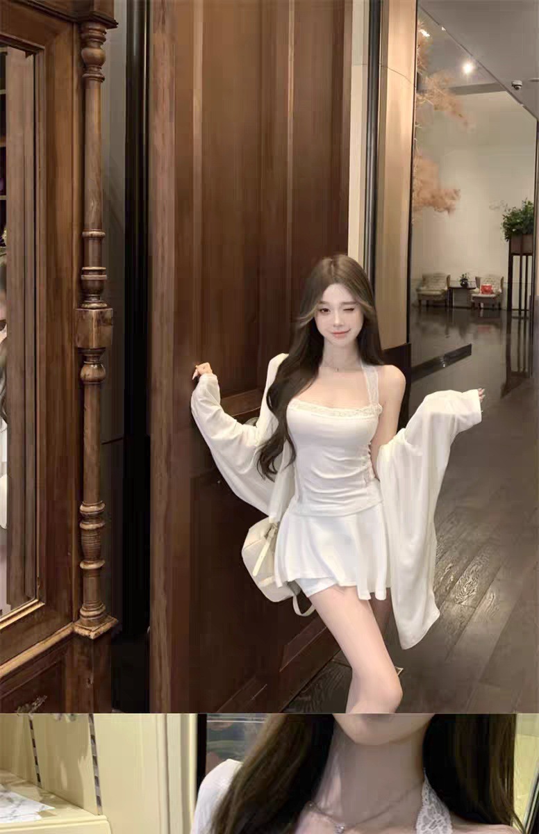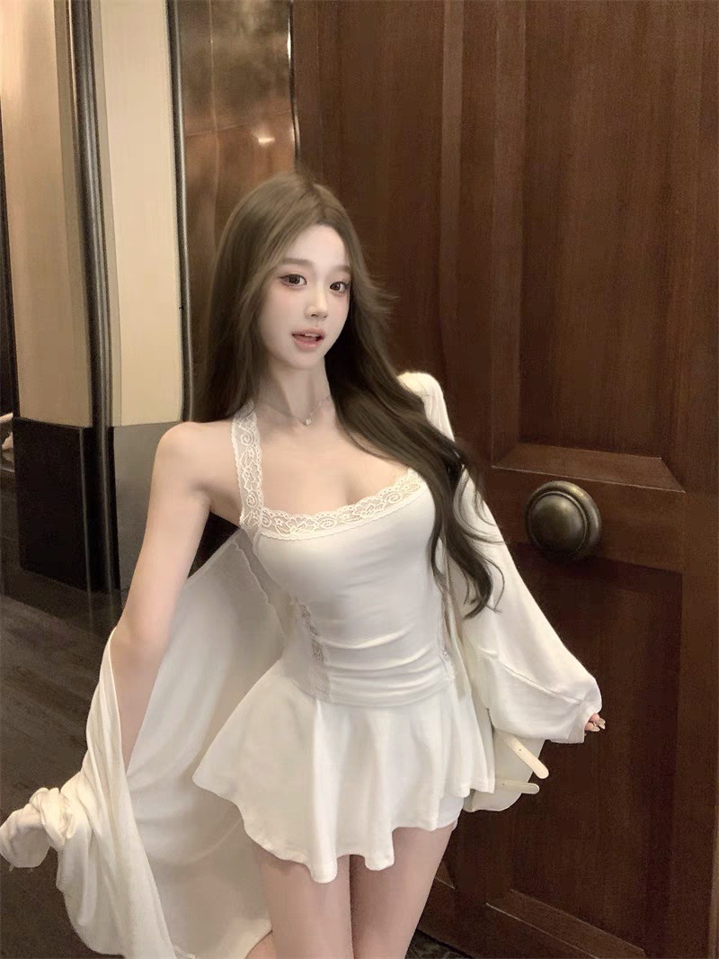 L5309 # 고정 컵 가슴 패드가있는 레이스 스티칭 목 뜨거운 소녀 콘돌 벨트 슬림 핏 외부 착용 내부 코트