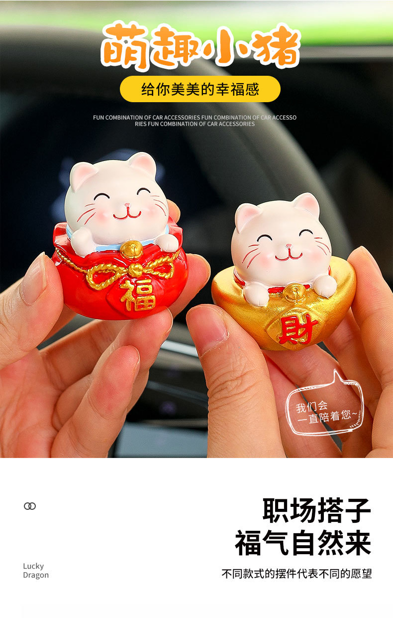 可爱福气满满招财猫家居客厅桌面装饰办公室工位治愈系卡通小摆件