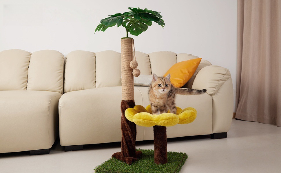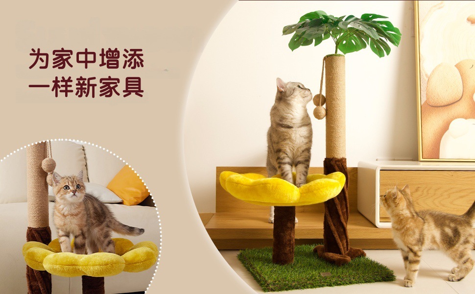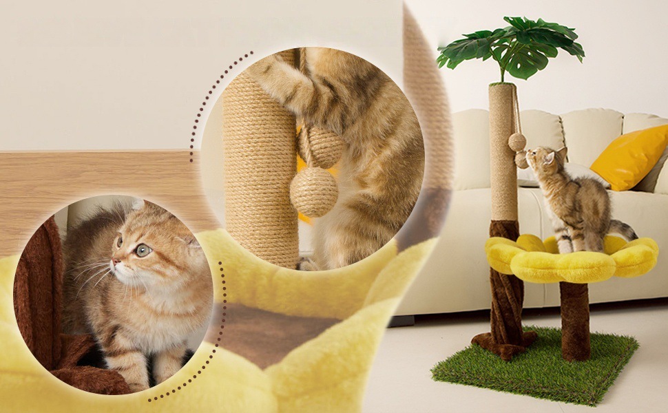 해바라기 고양이 둥지와 고양이 나무가 하나로 통합된 자체 자극 장난감, 내마모성 및 부스러기 없는 고양이 장난감스토어 가기