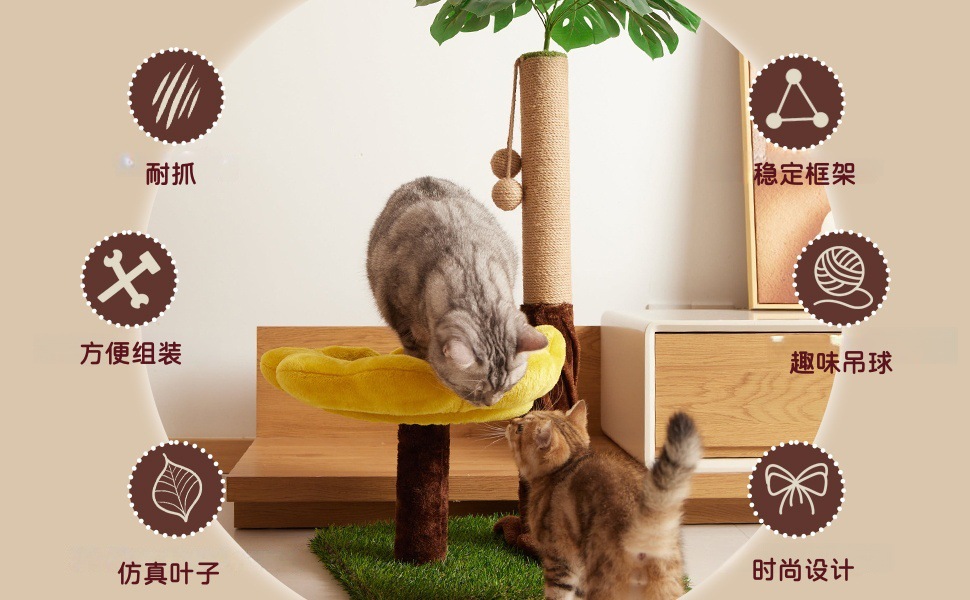 해바라기 고양이 둥지와 고양이 나무가 하나로 통합된 자체 자극 장난감, 내마모성 및 부스러기 없는 고양이 장난감