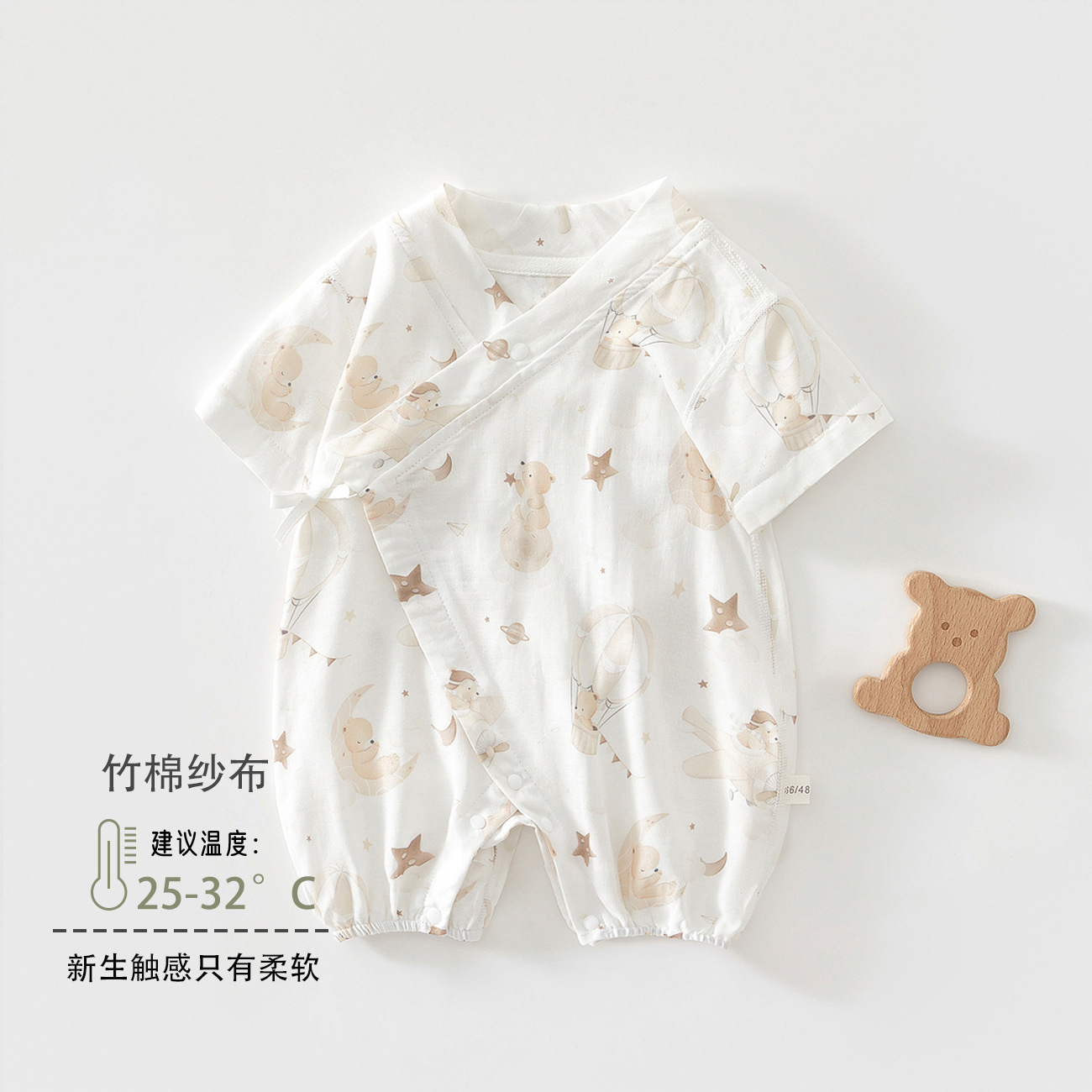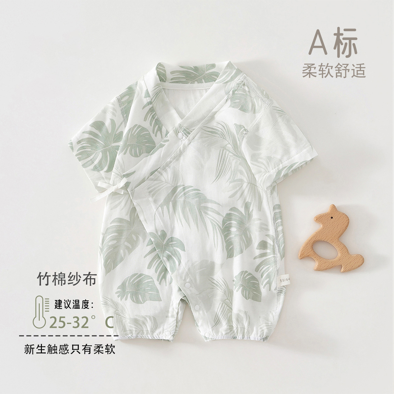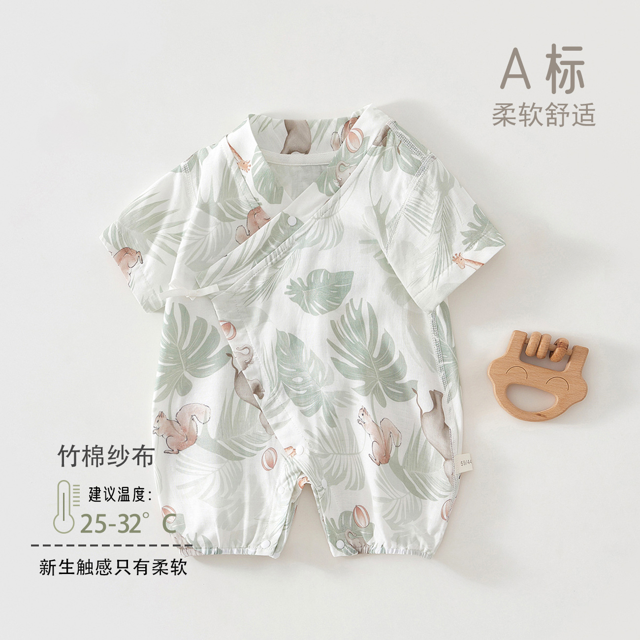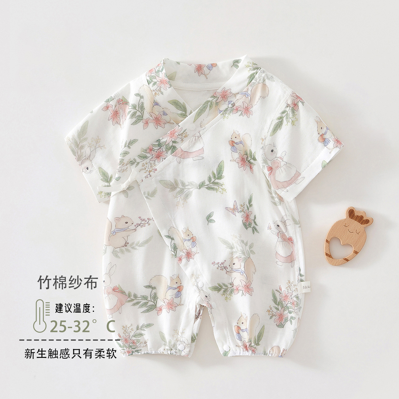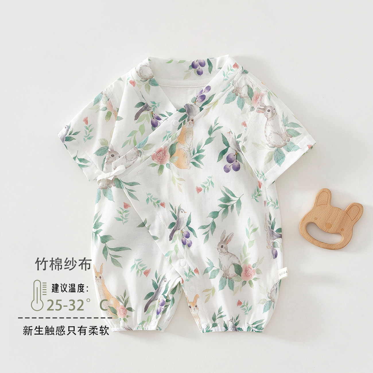 아기 옷 여름 올인원 반팔 대나무면 거즈 신생아 옷 아기 토끼 등반 옷 스님 옷