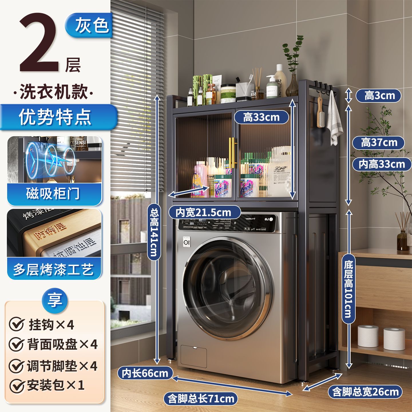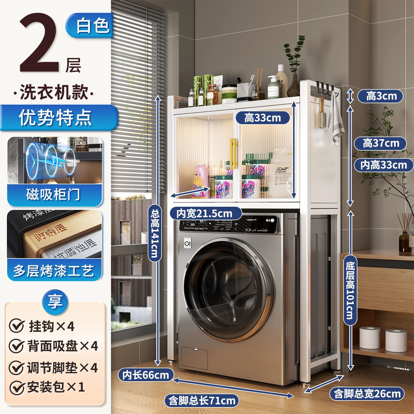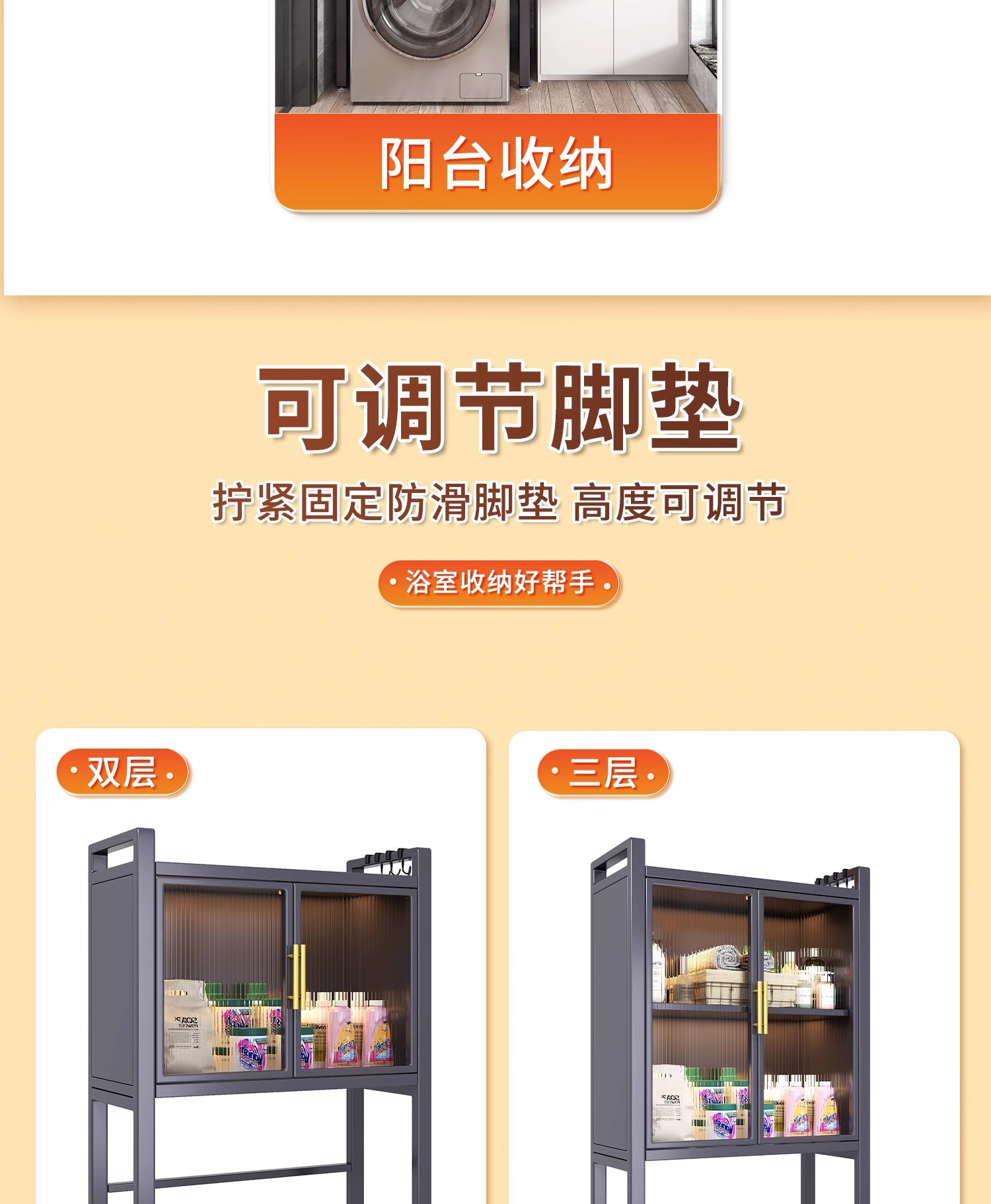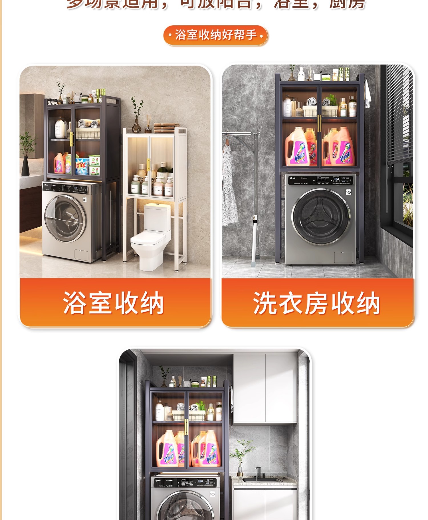 세탁기 위 수납장, 건조기 수납선반, 다층 수납선반, 변기 특수 지지대, 방수 및 자외선 차단