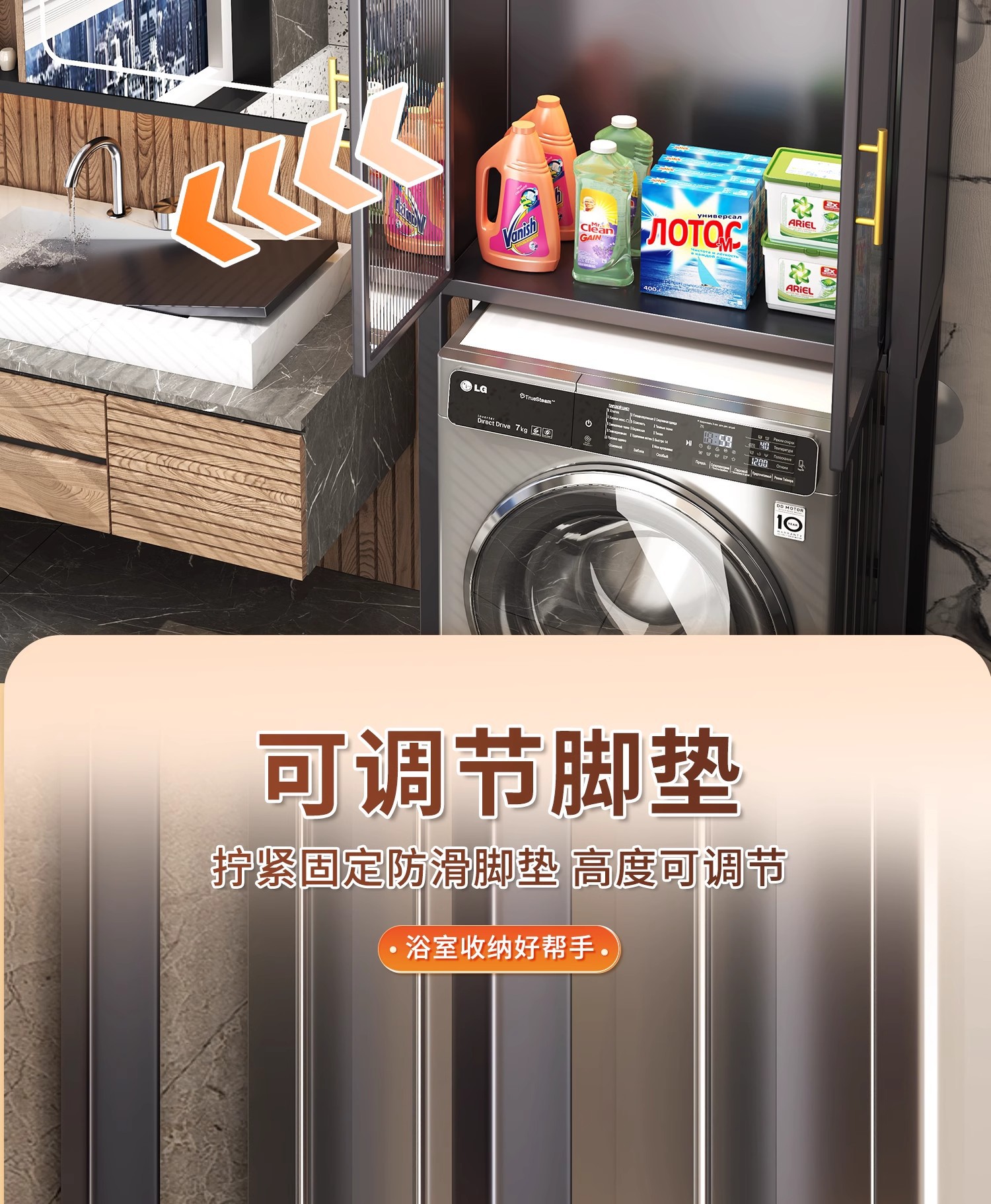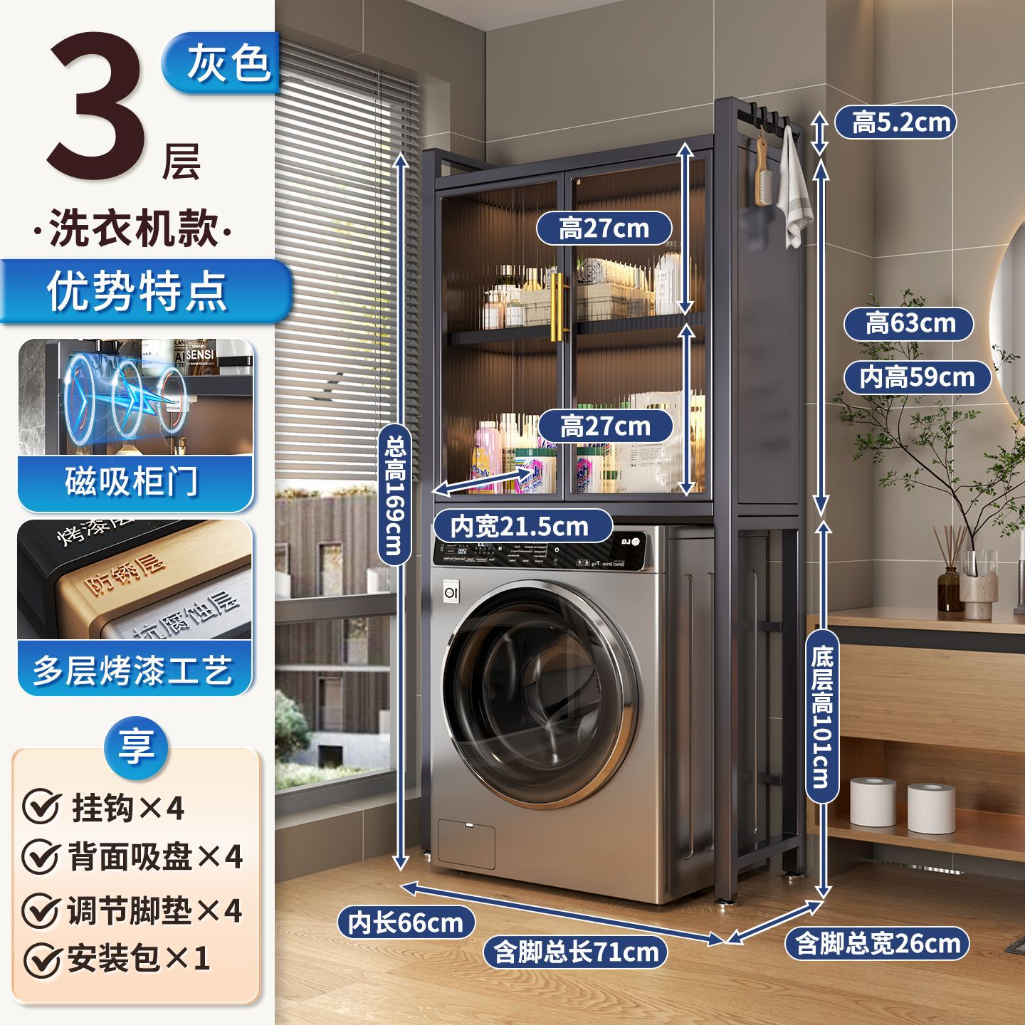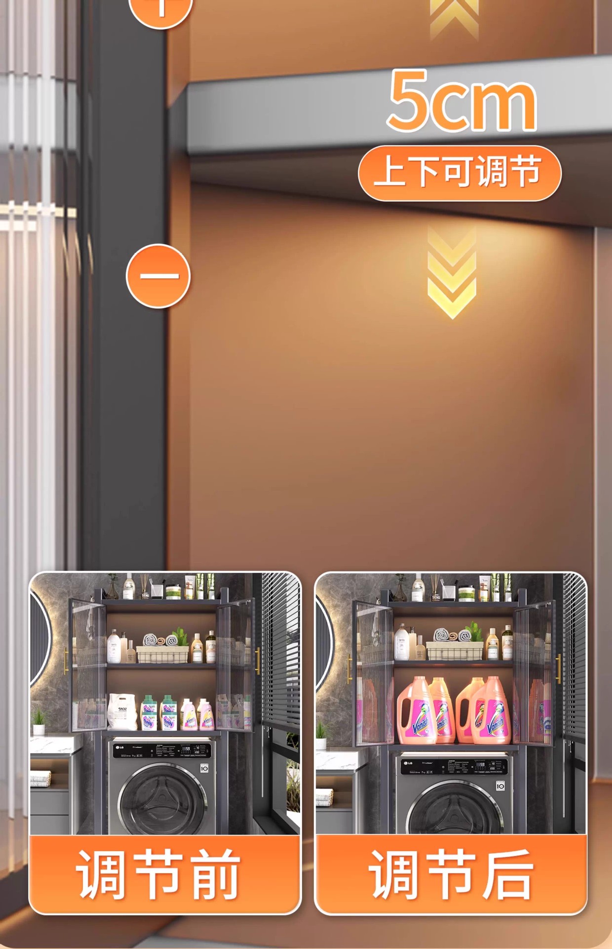 세탁기 위 수납장, 건조기 수납선반, 다층 수납선반, 변기 특수 지지대, 방수 및 자외선 차단