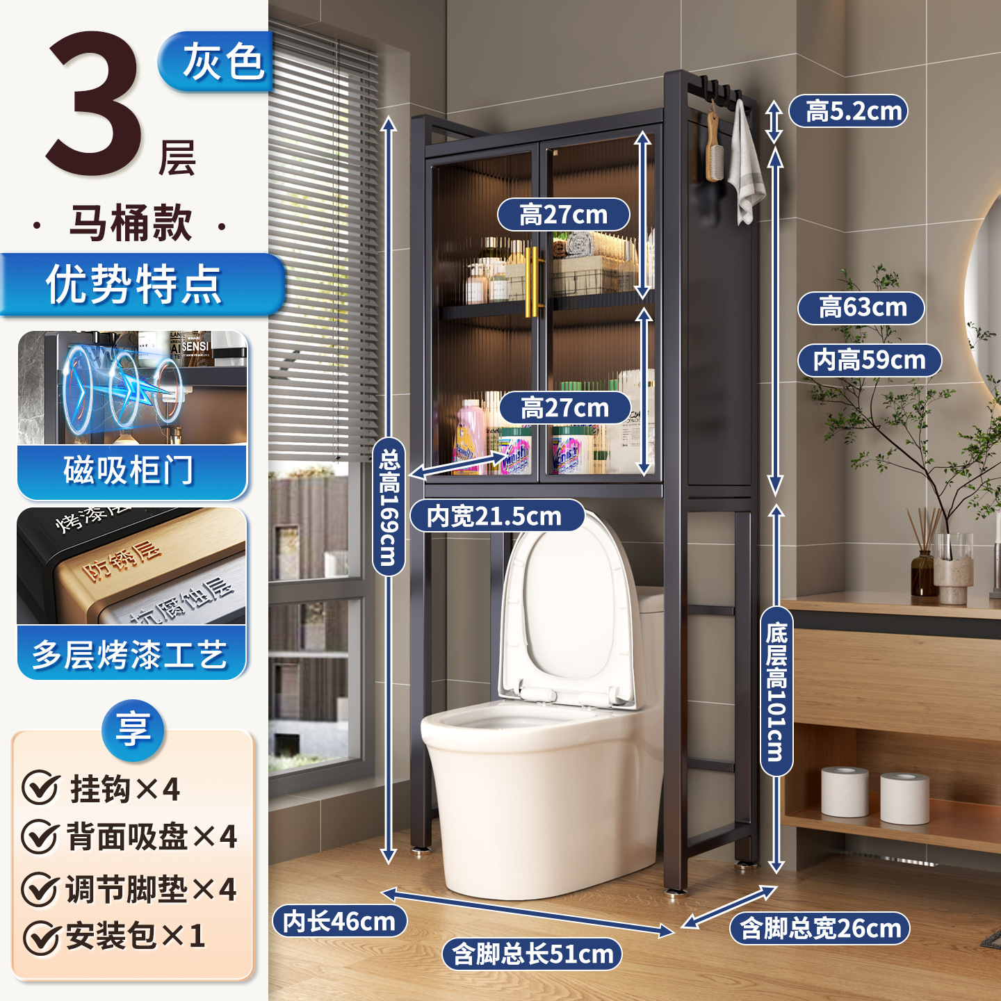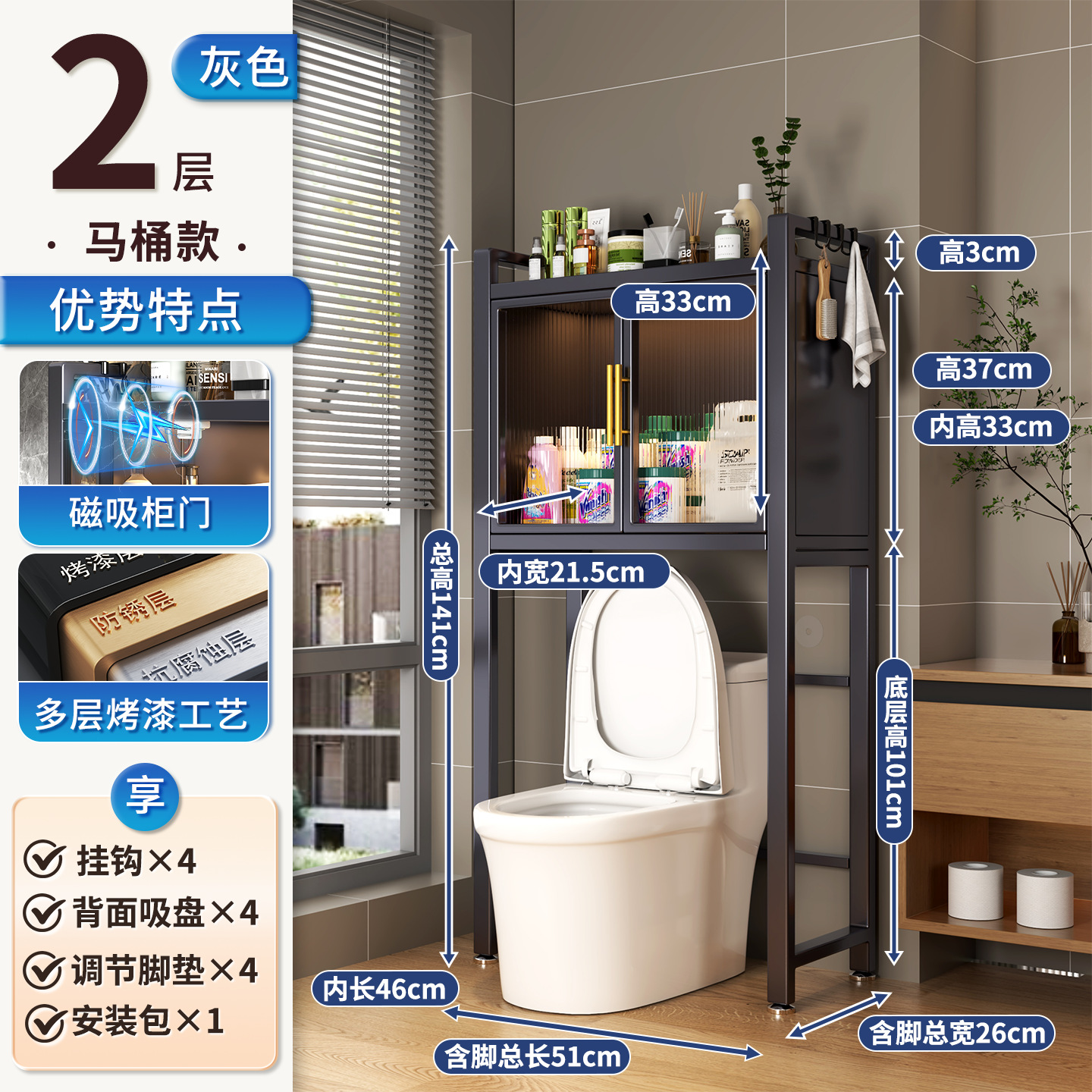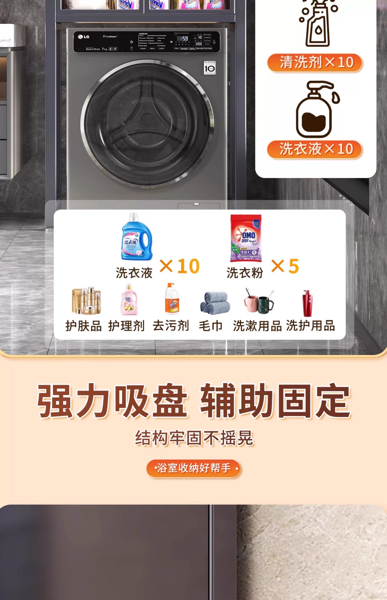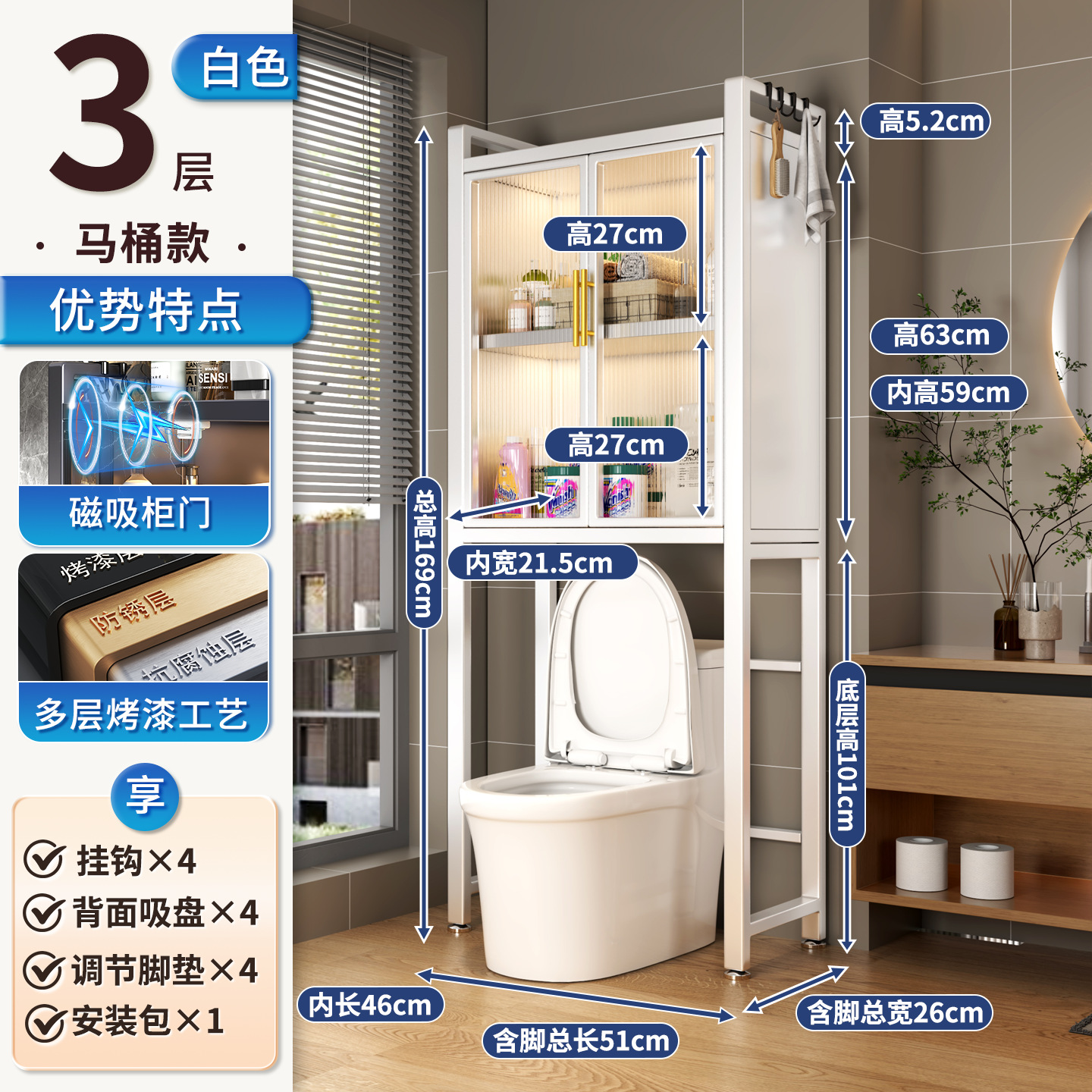 세탁기 위 수납장, 건조기 수납선반, 다층 수납선반, 변기 특수 지지대, 방수 및 자외선 차단