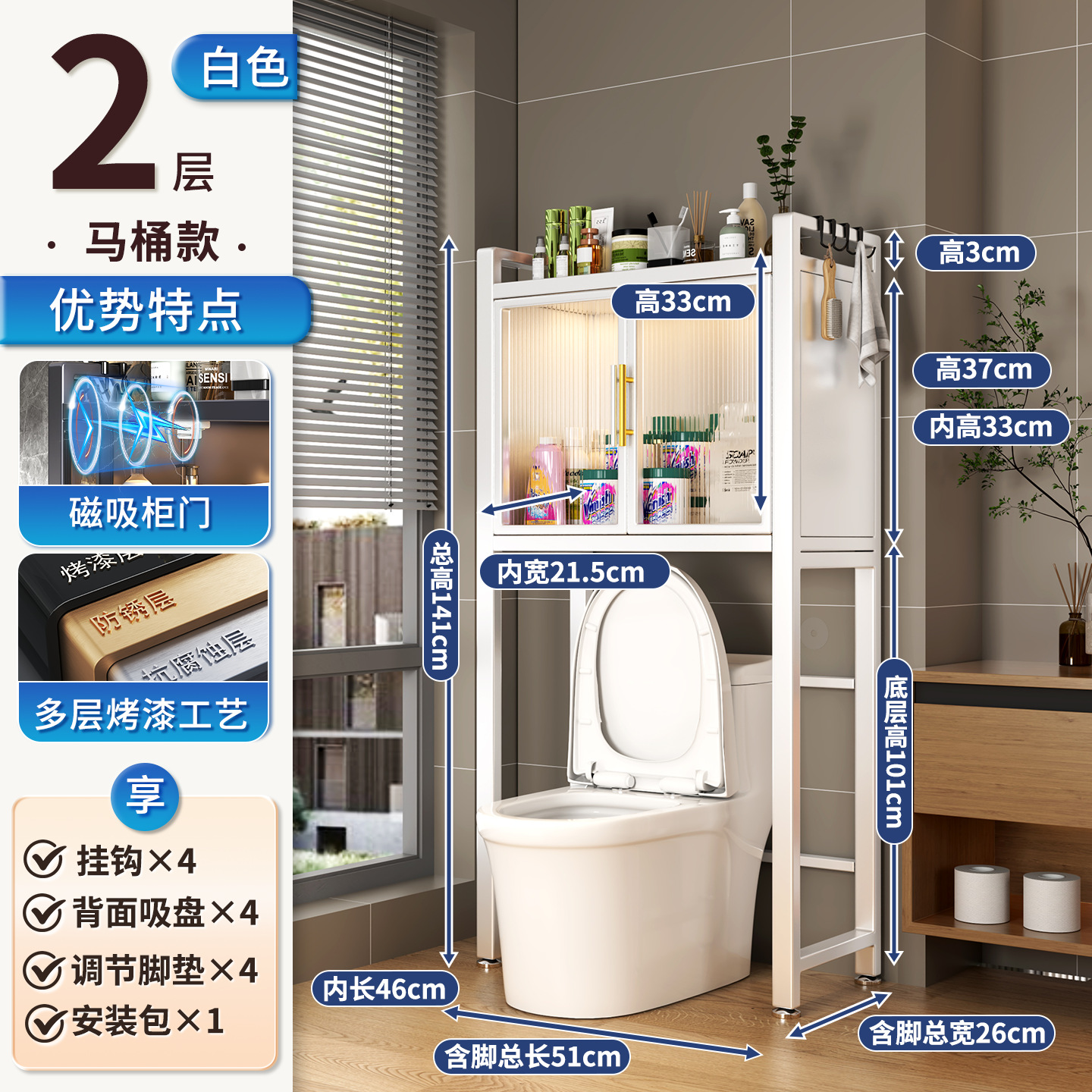 • 2단 변기장 [이중문] 하오위에 화이트 길이 51cm