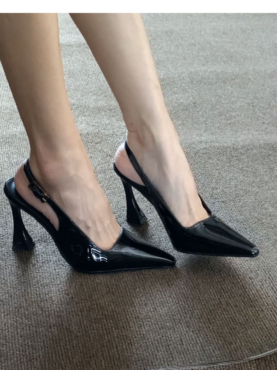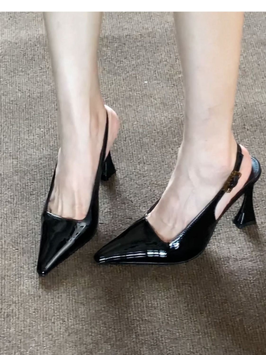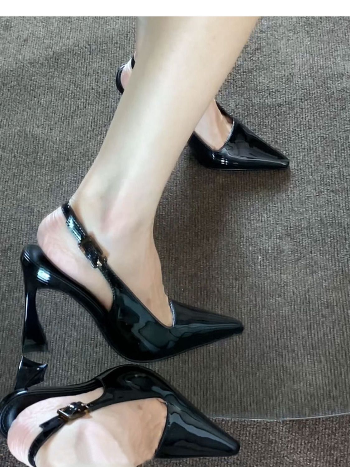 여성을위한 작은 뾰족한 두꺼운 굽 검은 색 패션 신발 2025 봄과 여름 새로운 스타일 펌프 버클 섹시한 프랑스 하이힐 샌들스토어 가기