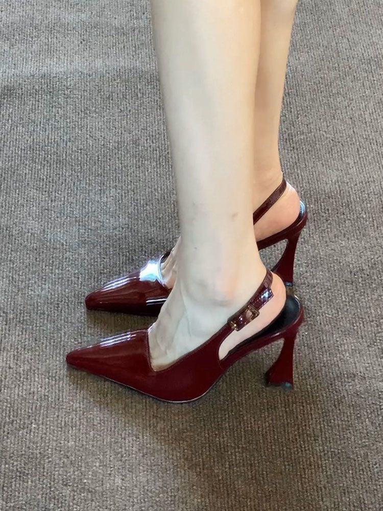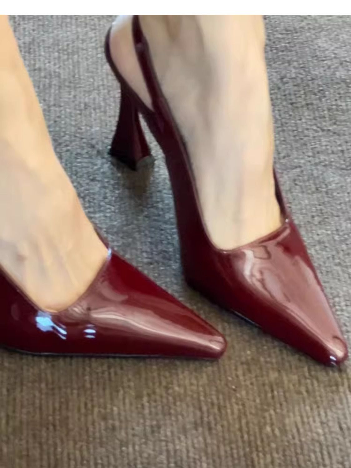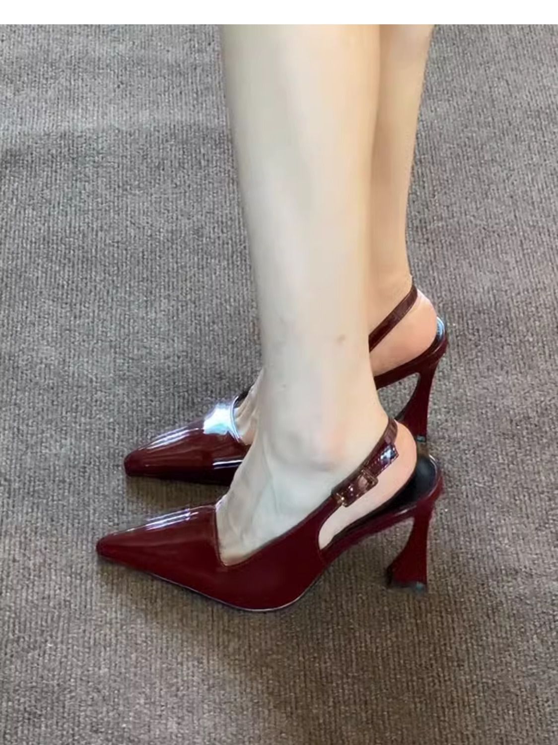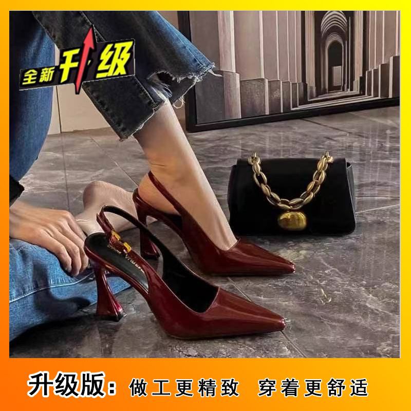 여성을위한 작은 뾰족한 두꺼운 굽 검은 색 패션 신발 2025 봄과 여름 새로운 스타일 펌프 버클 섹시한 프랑스 하이힐 샌들스토어 가기