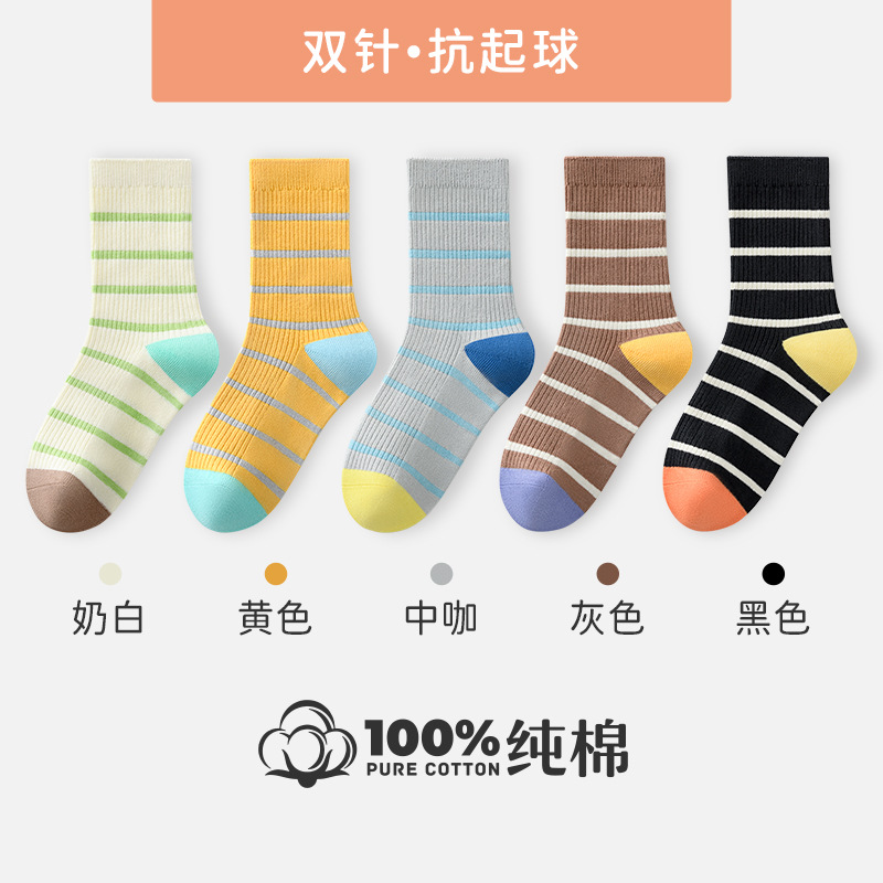 어린이 양말 순면 봄과 가을 줄무늬 색상 일치 중간 튜브 양말 크고 중간 크기의 어린이 소년 소녀 뼈없는 학생 양말 아기