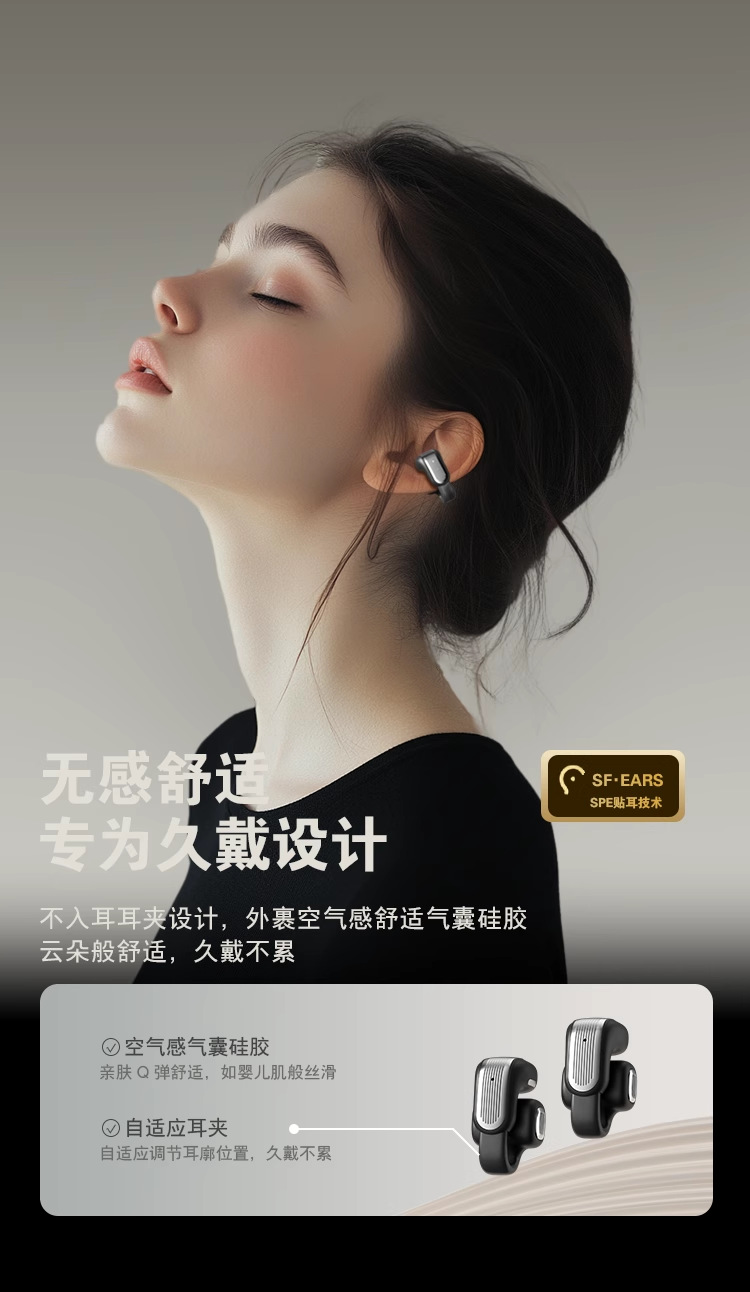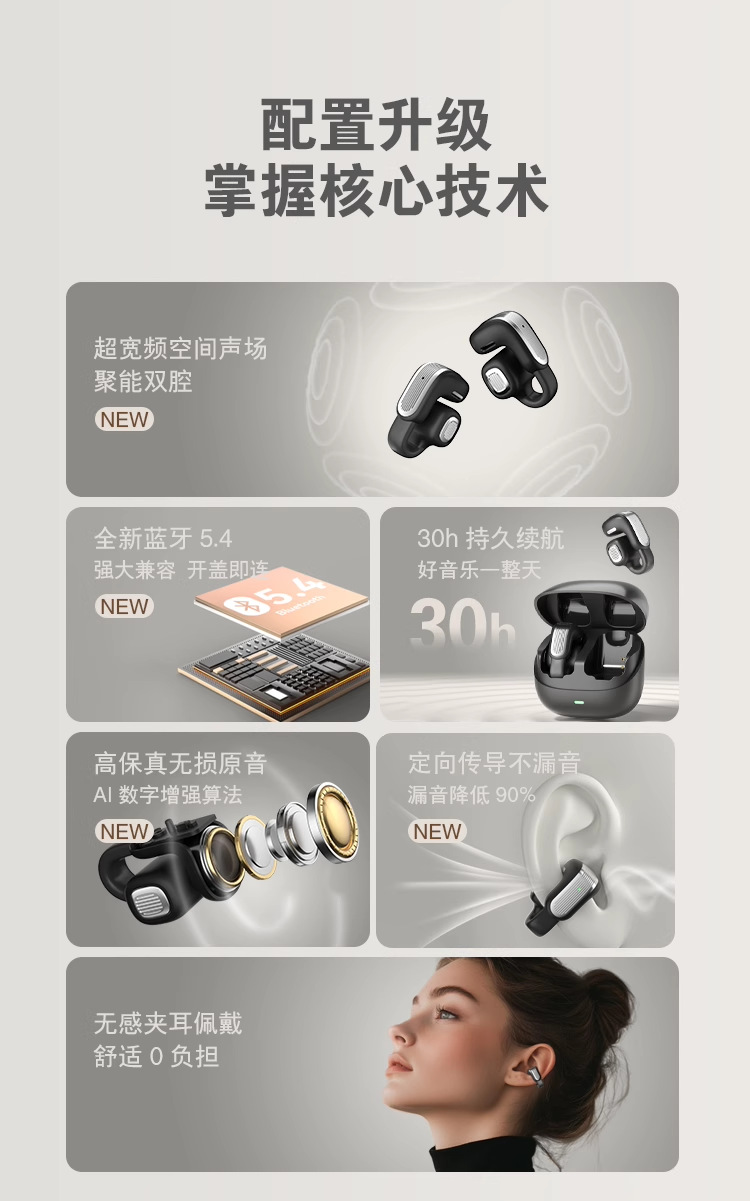 Huaqiangbei 새로운 CLIP 01 귀 클립 긴 내구성 ANC 소음 감소 스포츠 블루투스 헤드셋 무선 높은 음질